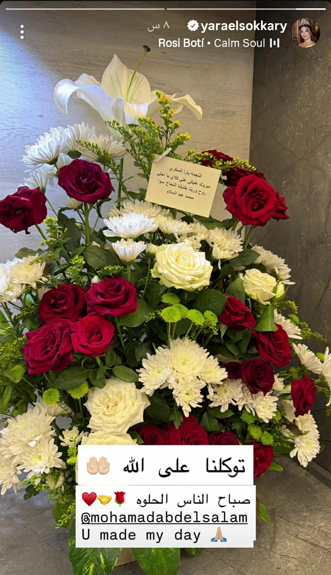 مخرج المسلسل يهدي يارا السكري باقة من الورود