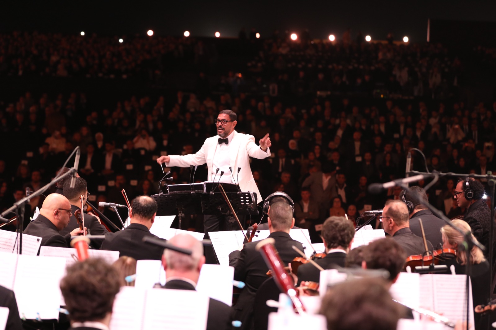 هاني فرحات يتألق بقيادته الأوركسترا الملكي البريطاني في حفل كامل العدد بالأهرامات