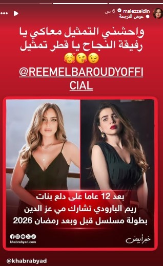 وبالتزامن مع بدء التحضيرات الخاصة للمسلسل، حرصت مي عز الدين ، على توجيه رسالة خاصة للفنانة ريم البارودي، والتي انضمت مؤخراً لفريق العمل، إذ نشرت صورة تجمعهما عبر خاصية الستوري التابعة لحسابها الرسمي على " انستغرام"، معلقة:" واحشني التمثيل معاكي يارفيقة النجاح، يا قطر التمثيل".