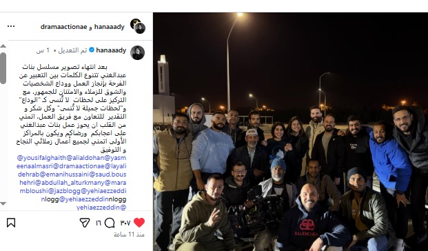 "بنات عبد الغني" من الأعمال الدرامية الخليجية التي تتواجد في الماراثون الدرامي الرمضاني المنتظر2026. ومع إعلان القائمين على العمل عن انتهاء تصوير كافة مشاهده، حرصت النجمة هنادي الكندري- إحدى بطلات العمل- على توديع موقع تصوير المسلسل بجمل وعبارات مؤثرة، جاءت كاشفة عن مدى امتنانها بالمشاركة في هذا المسلسل وحبها أيضاً لفريقه.