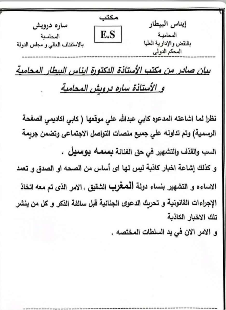 وأكد فريق الدفاع، أنّ تلك الأخبار المتداولة تحمل الإساءة والتشهير بنساء دولة المغرب الشقيق، الأمر الذي تم معه اتخاذ الإجراءات القانونية، وتحريك الدعوى الجنائية ضدها، وكل من ينشر تلك الأخبار الكاذبة، والأمر الآن في يد السلطات المختصة.وكانت "كابي عبد الله" قد أثارت جدلًا واسعًا عبر منصات التواصل الاجتماعي خلال الأسابيع القليلة الماضية، حيث روّجت شائعات عدة بشأن عدد من الفنانين، لعل أبرزهم مي عز الدين، وكذلك المطرب الشعبي الراحل إسماعيل الليثي وغيرهما.