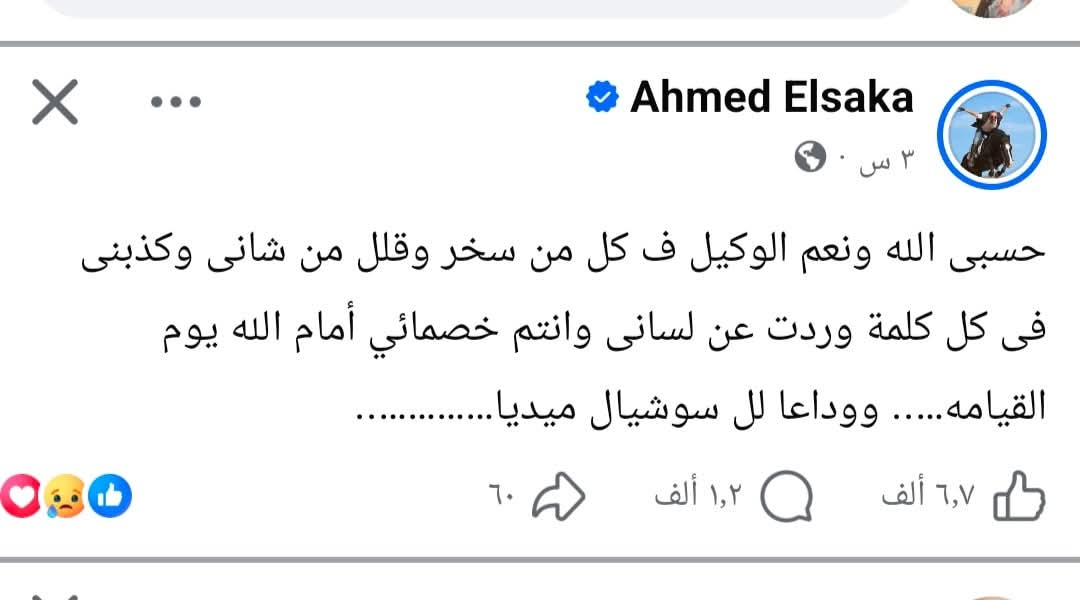 ويأتي قرار السقا بعد أيام قليلة من تفاعل واسع أثاره منشور سابق له عبر حساباته على السوشيال ميديا، عبّر خلاله عن دعمه ومساندته للنجم المصري محمد صلاح، لاعب نادي ليفربول الإنجليزي، وهو المنشور الذي فتح باباً واسعاً للتعليقات المتباينة بين مؤيدين ومعارضين، ما زاد من حدة الجدل حوله، وأعاد تسليط الضوء على حجم الضغوط التي يتعرض لها الفنانون عبر المنصات الرقمية.