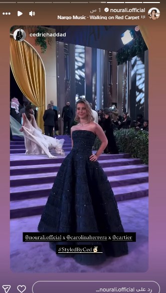 كما حرص العديد من الفنانين على مشاركة متابعيهم لحظات الحفل عبر منصات التواصل الاجتماعي الخاصة بهم، سواء قبل انطلاقه أو أثناءه. وكانت من بينهم النجمة السورية نور علي، التي نشرت مقطع فيديو قصيراً على "إنستغرام"، ظهرت فيه على السجادة الخزامية بفستان أسود أنيق.
