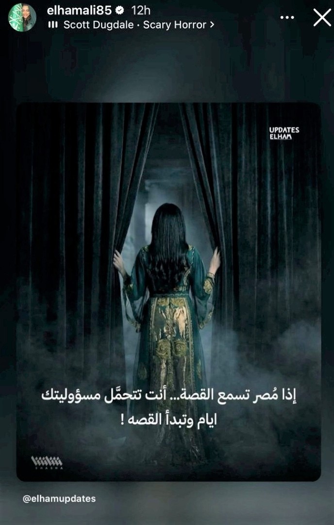 إلهام علي- الصورة من خاصية القصص بحسابها على الانستغرام