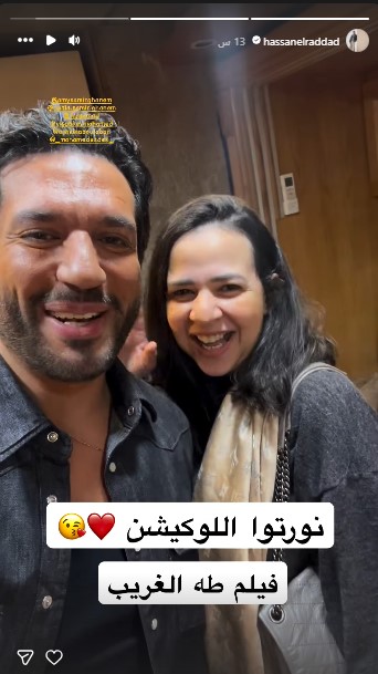 وعلى جانبٍ آخر، وثق الفنان حسن الرداد زيارة زوجته إيمي سمير غانم وشقيقتها الفنانة دنيا سمير غانم له في كواليس أحدث أفلامه السينمائية "طه الغريب"، والذي يواصل تصوير مشاهده حالياً تمهيداً لطرحه في دور السينما قريباً.وجاء ذلك من خلال نشر الفنان حسن الرداد لمقطع فيديو قصير عبر خاصية "ستوري" بحسابه الرسمي بـ"إنستغرام"، وظهر في مقطع الفيديو وهو يعرّف الجمهور ببطلة العمل الفنانة تارا عماد، والتي من جانبها رحبت بالمُتابعين قائلة: "مسا مسا"، كما قدّم منتج الفيلم محمد السبكي، قبل أن تظهر إيمي ودنيا سمير غانم في نهاية الفيديو برفقته، وقد بدت السعادة واضحة على وجوههم.