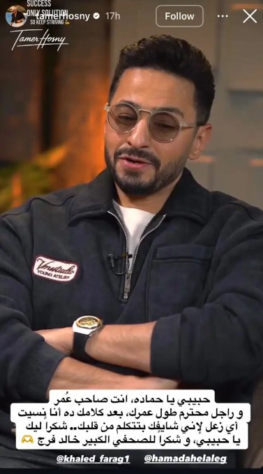 رسالة تامر حسني لحمادة هلال عبر حسابه على إنستغرام