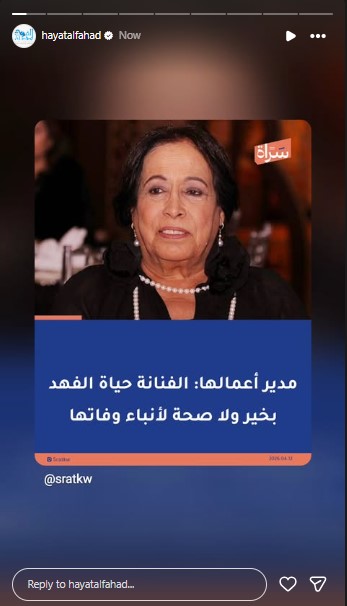 وكان من المقرر أن تشارك حياة الفهد في عمل فني جديد خلال موسم رمضان الماضي، إلا أن حالتها الصحية حالت دون ذلك. وطالب مدير أعمالها الجمهور ومحبيها بمواصلة الدعاء لها، متمنيًا أن تتجاوز هذه الأزمة الصحية وتعود من جديد إلى جمهورها.