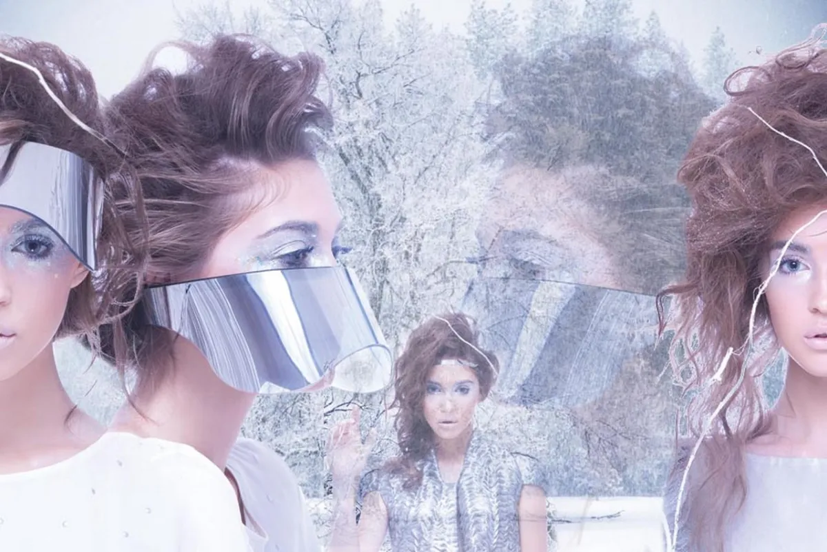البشرة معدنيّة والعيون ثلجيّة برّاقة كأنّها قطع من الجليد، يلمع تحت أشعة الشّمس... إطلالات جريئة تنسج الخيال، عبر مزج الواقع، الحاضر مع المستقبل.... فكرة وتنسيق: رابعة الزيّات وهبي، عدسة: جان كلود بجاني، مكياج: سارة حسن، شعر: سلام صالون طوني صوايا، الملابس: Kulte – Verdun، المستحضرات متوفّرة في محلات "وجوه" Faces.