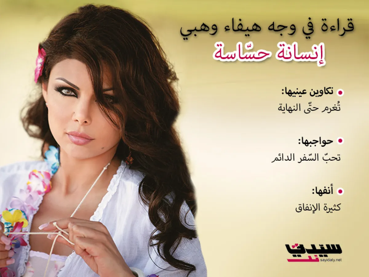 من المعروف أنّ هيفا تتمتّع بشعبيّة كبيرة، وثمّة تفاصيل كثيرة في وجهها يُمكن أن تكشف لنا خصائص هيفا النفسيّة. فالشامية التي تظهر إلى جانب الشفتين، سواء أكانت إلى اليمين أم إلى اليسار، تفيد انّ هيفا تحبّ السّهر والأكل اللذيذ وتقبل الدعوة وتملك حظاً جميلاً.