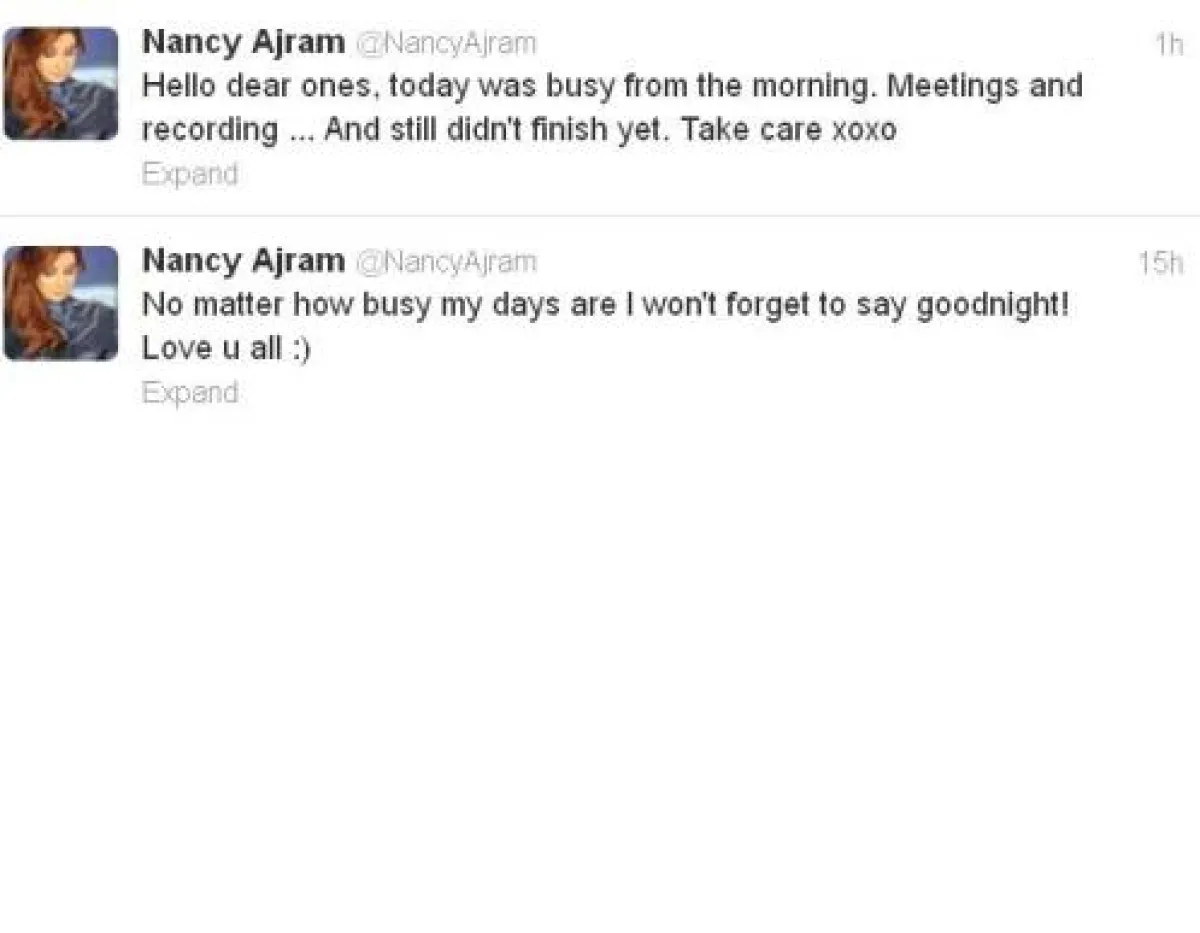 بدورها كانت نانسي عجرم مشغولة باجتماعات وبنشاطات فنية لم تعلن عن فحواها، واكتفت بعمل ريتويت لنصائح طبية حول كيفية فقدان الوزن من خلال النوم.