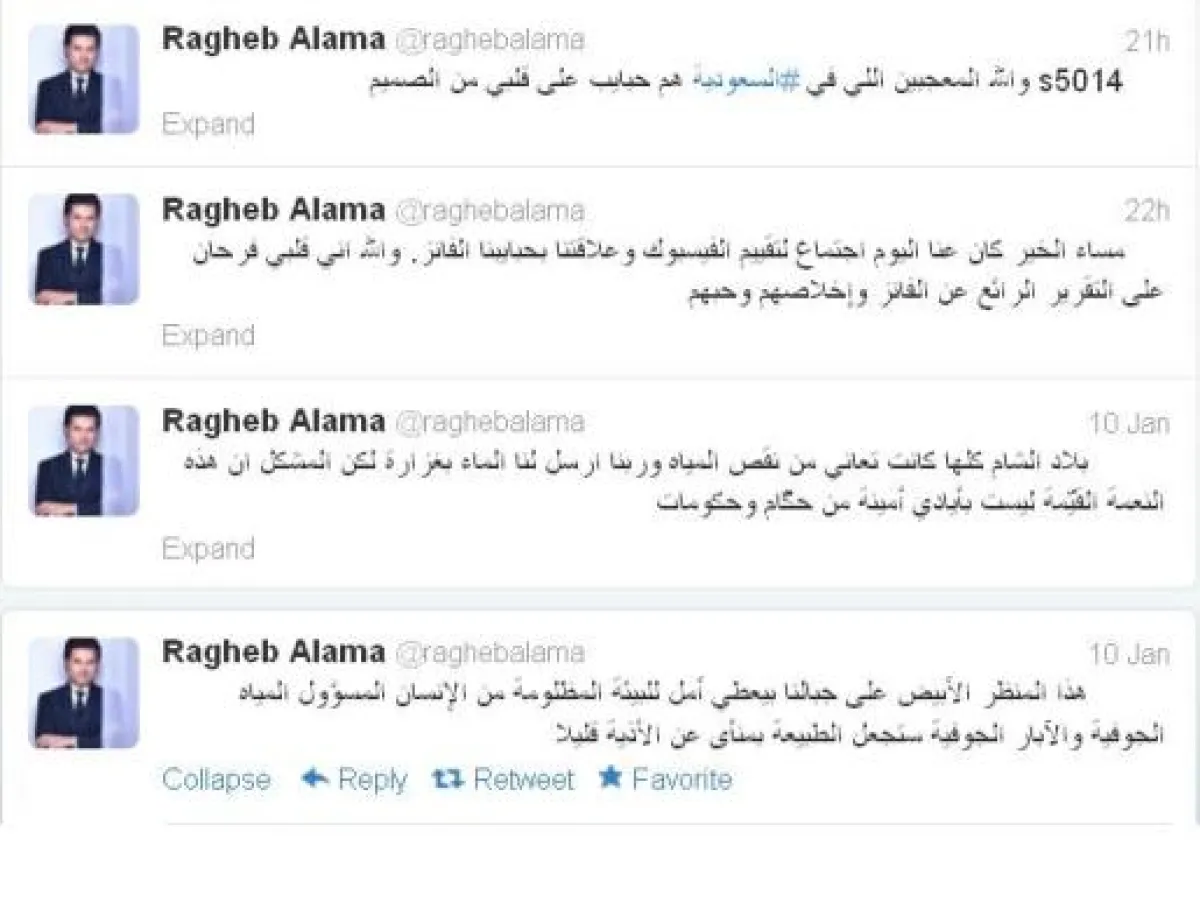 وكان راغب قد كتب تغريدة قبل يومين، تحدث فيها عن اجتماع أجراه لتقييم الفيسبوك وعلاقته بالفانز، وأعرب عن سعادته بما أسماه التقرير الرائع عن الفانز وإخلاصهم وحبهم، وأثنى بشكل خاص على محبيه في السعودية.