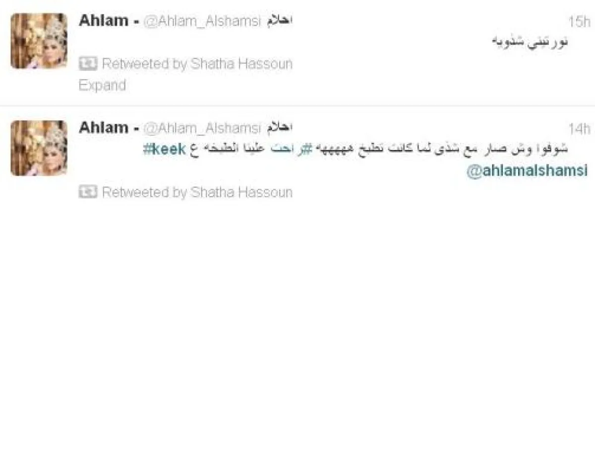 أما الفنانة شذى حسون المشغولة بتجربتها التمثيلية الجديدة مع الفنان فايز السعيد، فوجدت بعض الوقت للمرح، وقامت بعمل ريتويت لتغريدات الفنانة أحلام، وهي تتندر على طريقة صناعتها الكيك، في عشاء جمع بينهما.