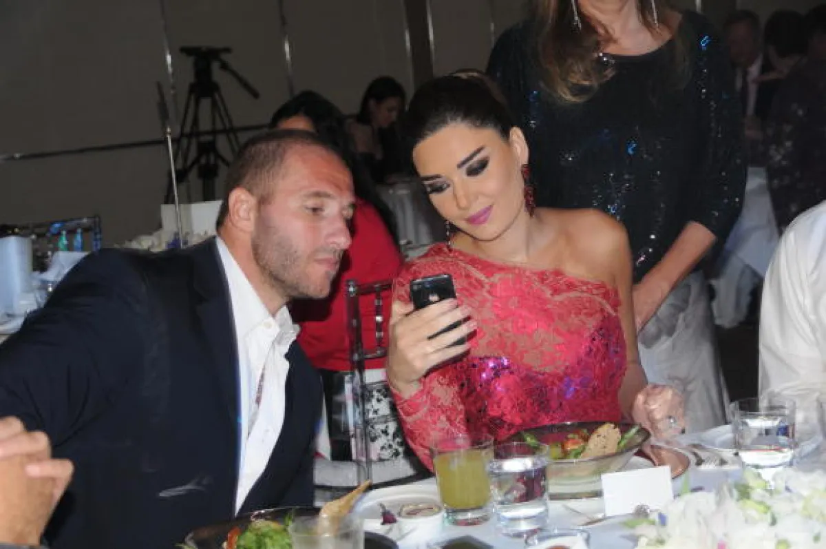 وتبدو نانسي في هذه الصورة، وهي تقوم بالتكلّم على الـ "واتس آب"، خلال إحدى حفلاتها.