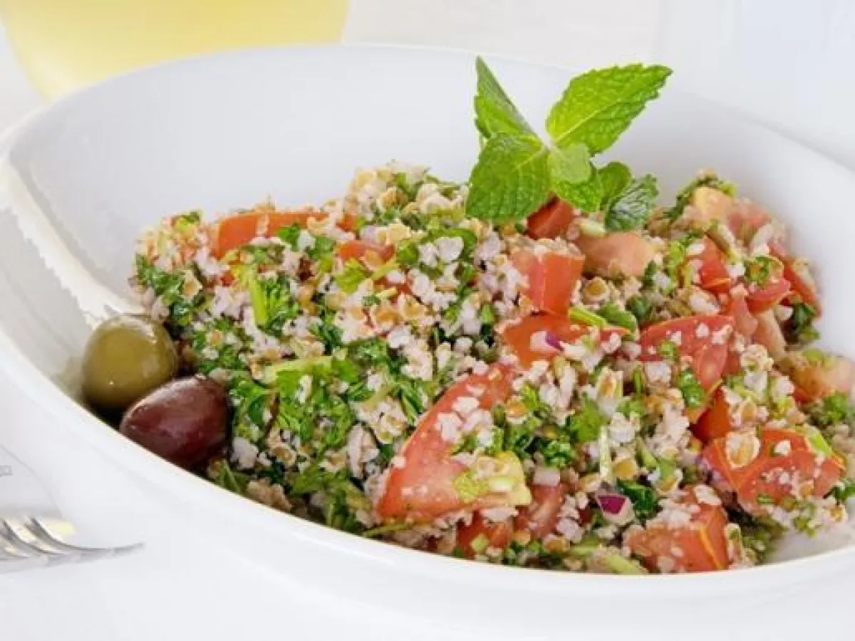 1- يُنقع البرغل في الماء لمدة ربع ساعة، ثم يُصفّى.