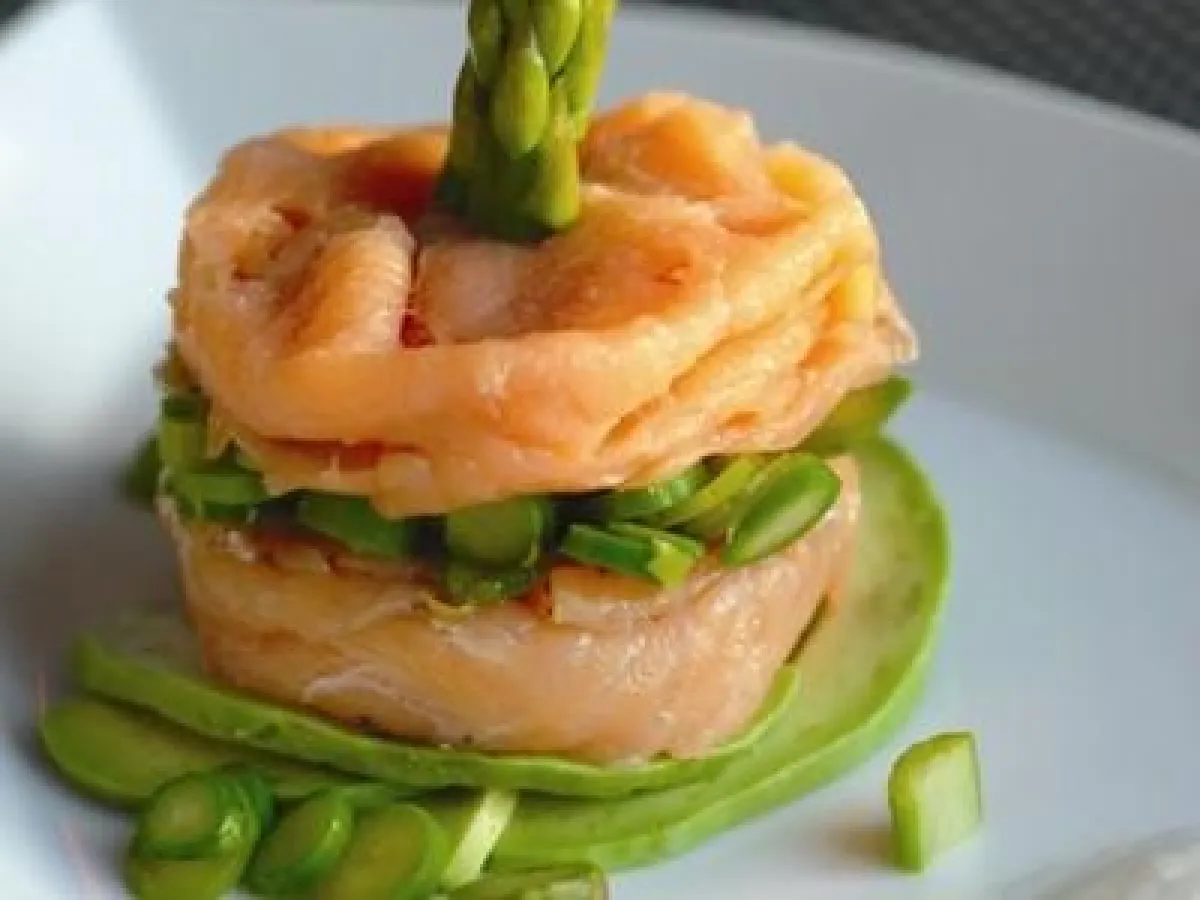 4- تلفّ السلامي على شرائح الكوسى، ويوزّع البصل الأخضر حولها وفي وسطها، ثم يوضع الهليون على قمّتها.