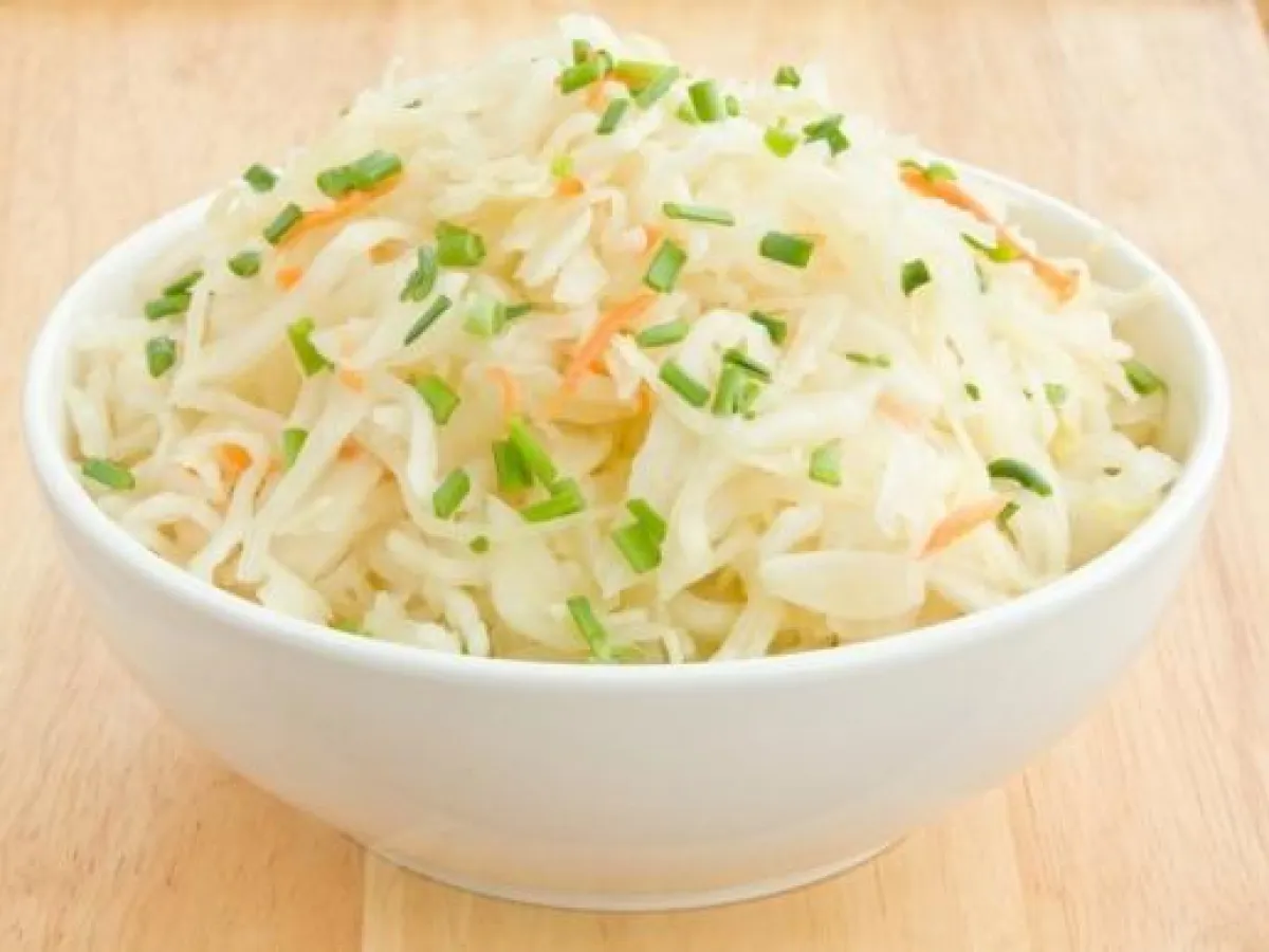 1-يفرم كل من الملفوف والشمّر والفجل والإجاص فرماً ناعماً، ويوضع هذا المزيج على حبات ملفوف بروكسل، مع سكب خليط الزيت والخلّ عليه.