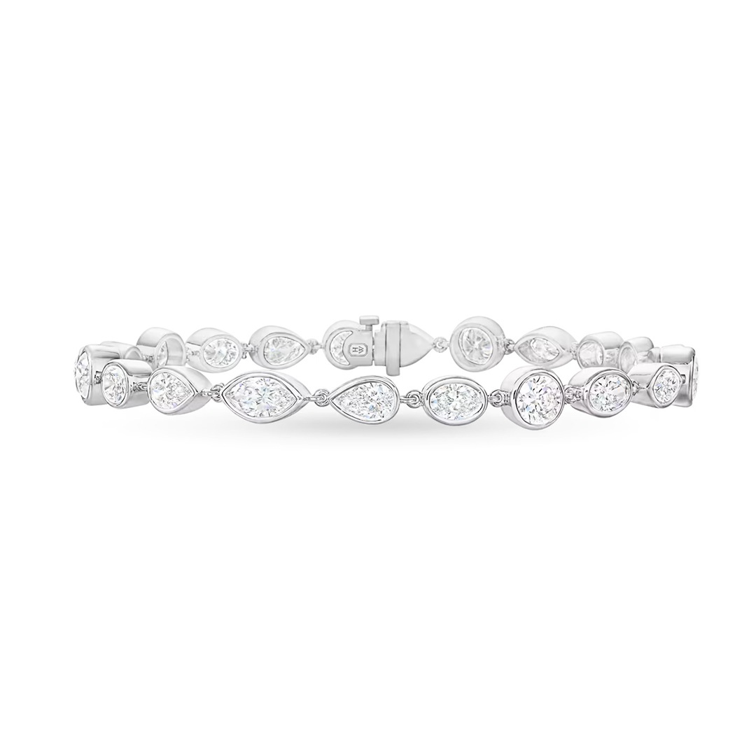 صُمم هذا السوار الألماسي الفاخر يدويًا لإبراز الجمال الطبيعي لأروع الأحجار الكريمة في العالم، حيث صُنع من البلاتين المرصوف بـ22 ماسة لامعة بأشكال الماركيز والبيضاوي والإجاصي والدائري، تزن حوالي 8.27 قيراط.