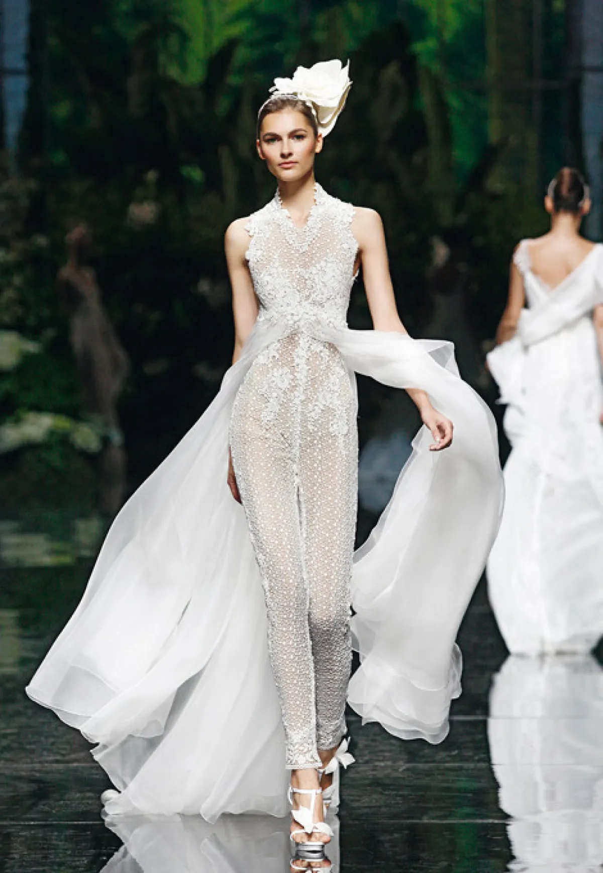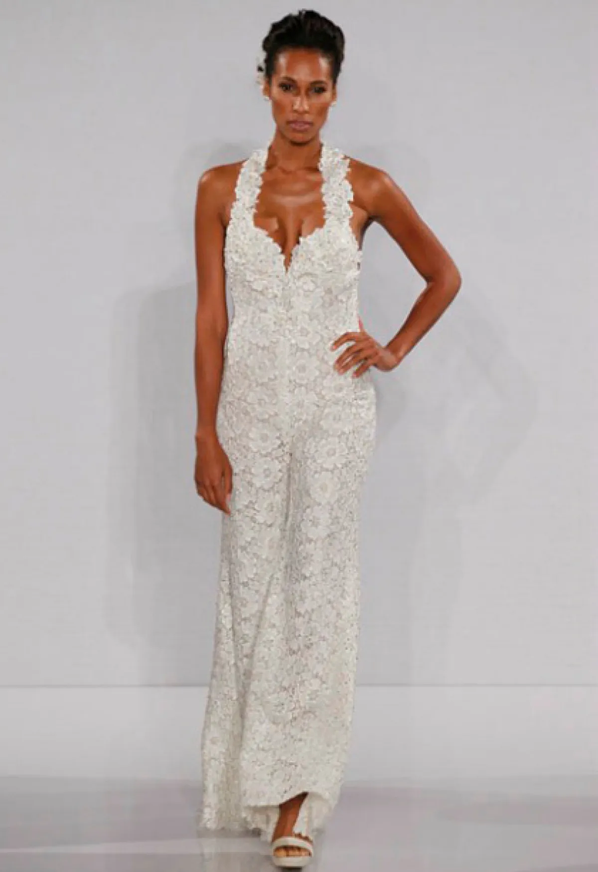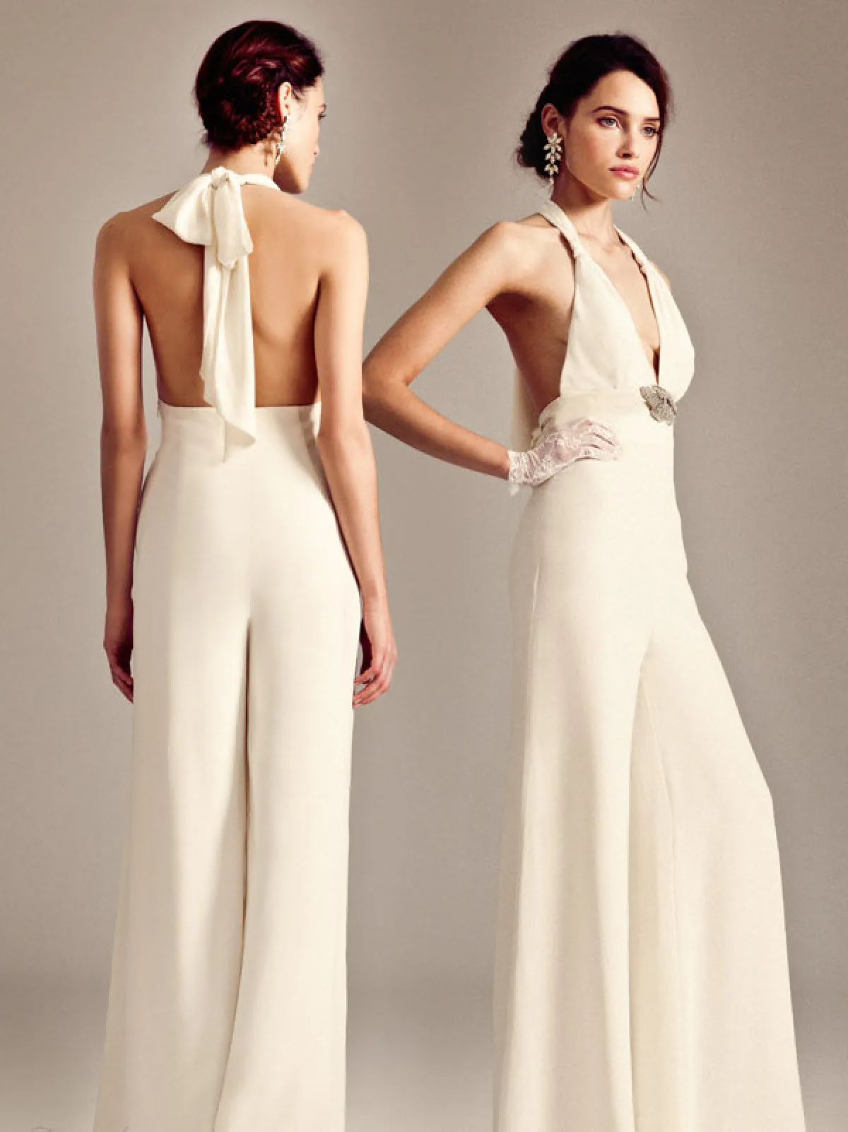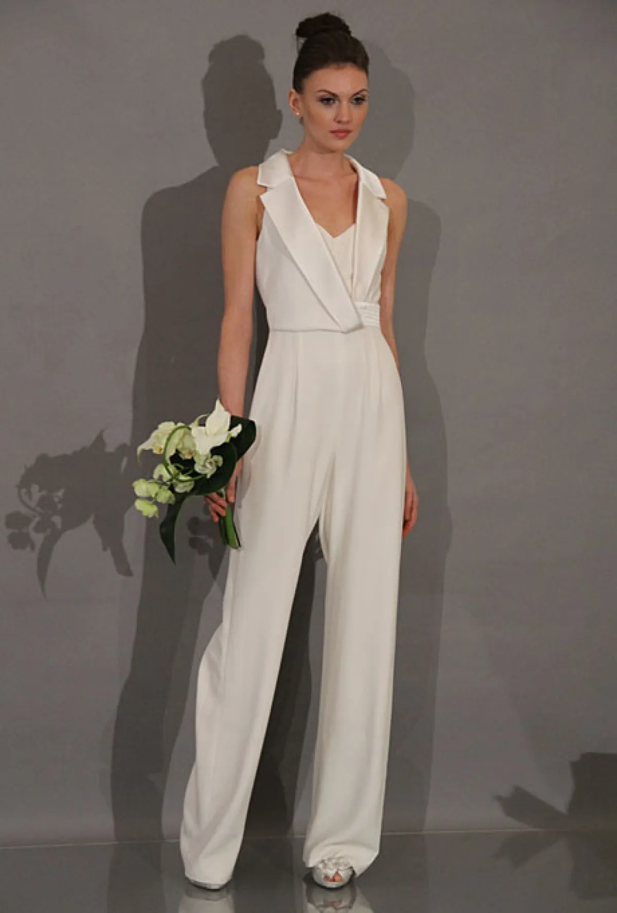 يُعتبر الـ Jumpsuit أحدث صيحات الموضة لهذا الصيف. فهو مناسب للعروس التي تهوى التميّز في نهار زفافها.