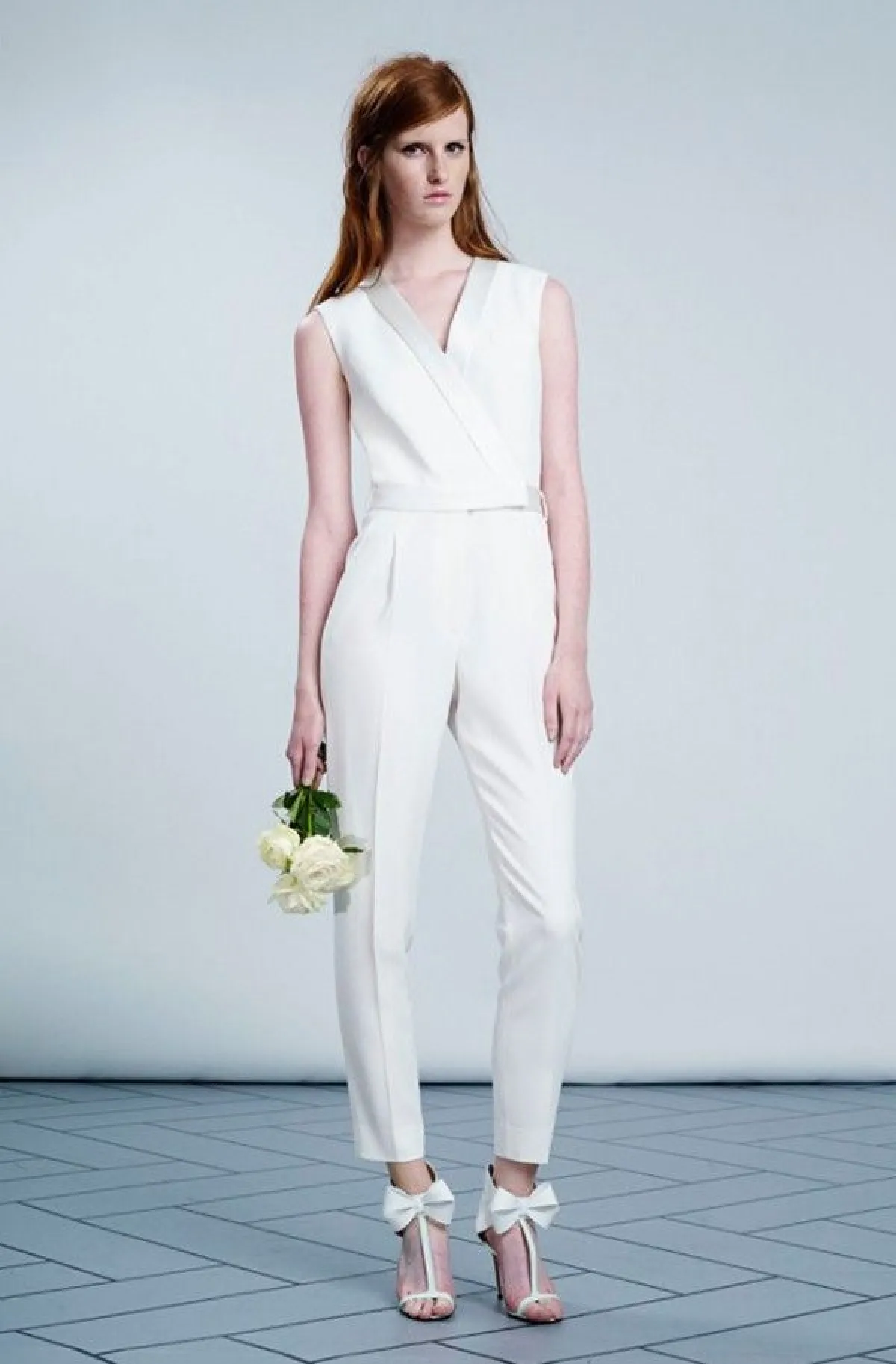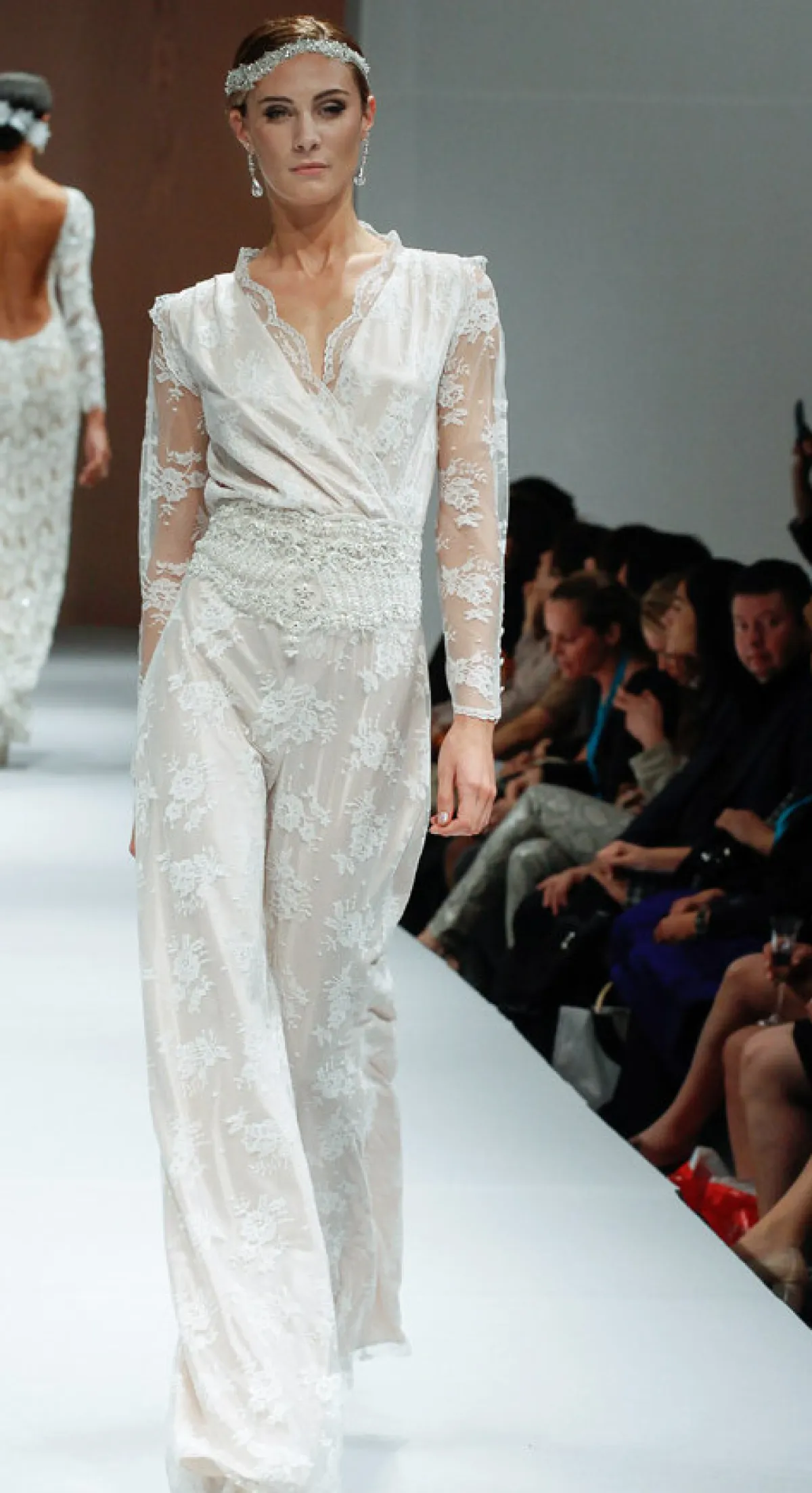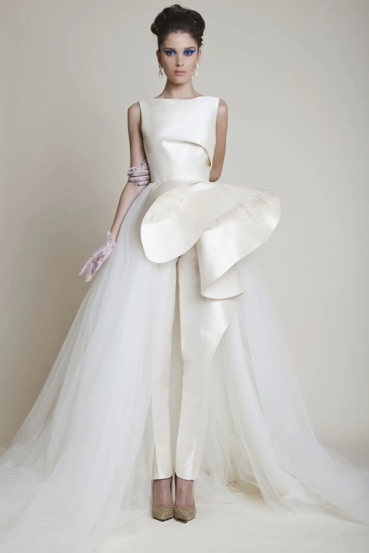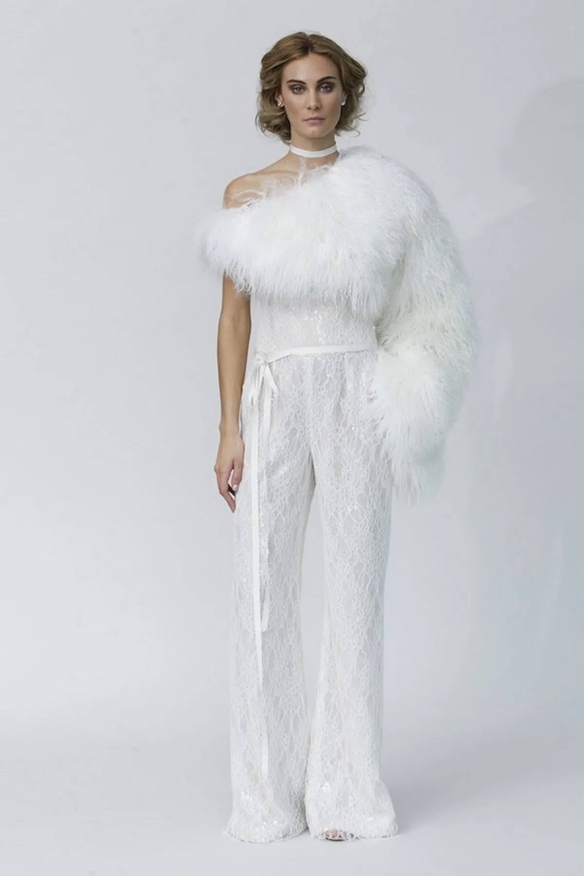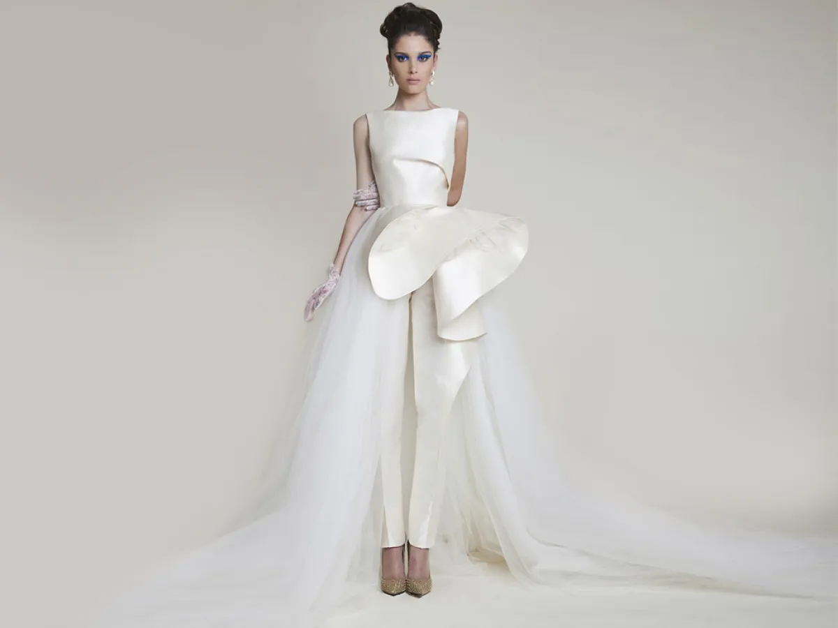 يُعتبر الـ Jumpsuit أحدث صيحات الموضة لهذا الصيف. فهو مناسب للعروس التي تهوى التميّز في نهار زفافها.