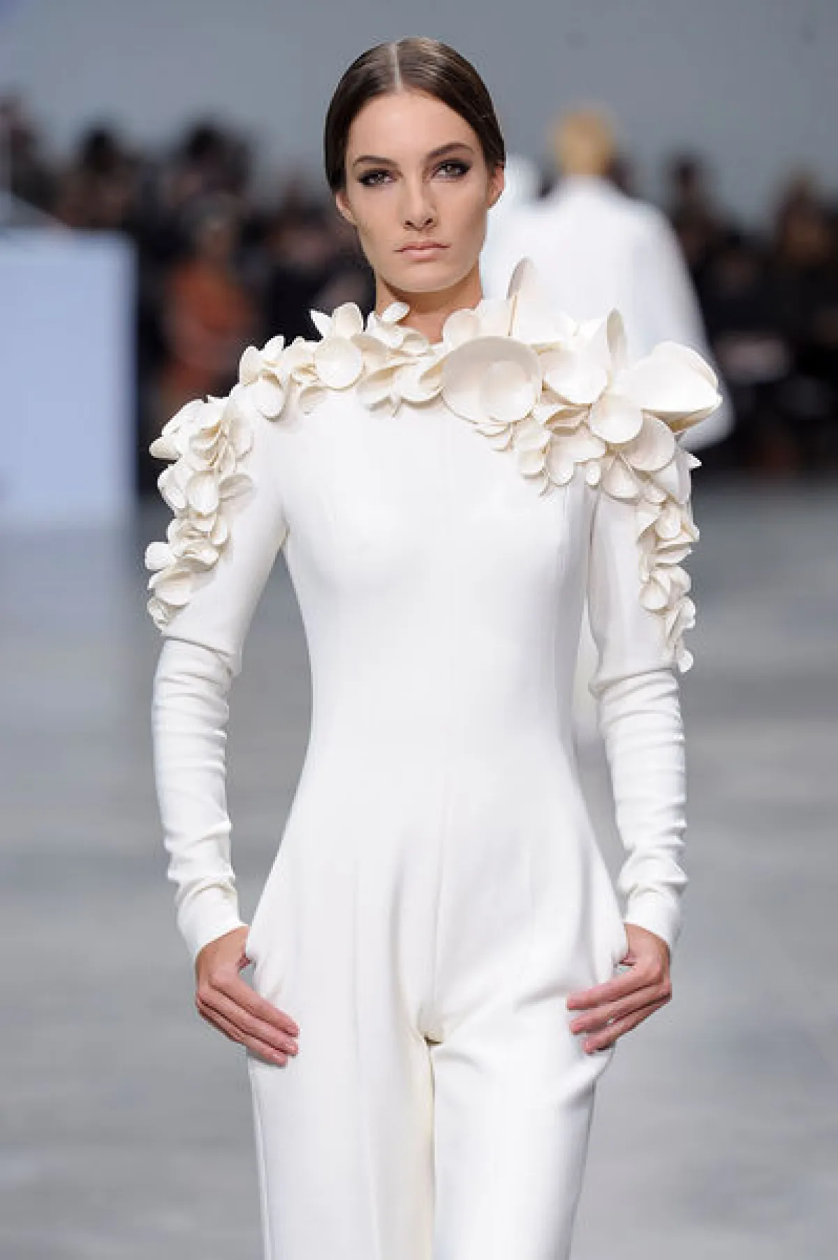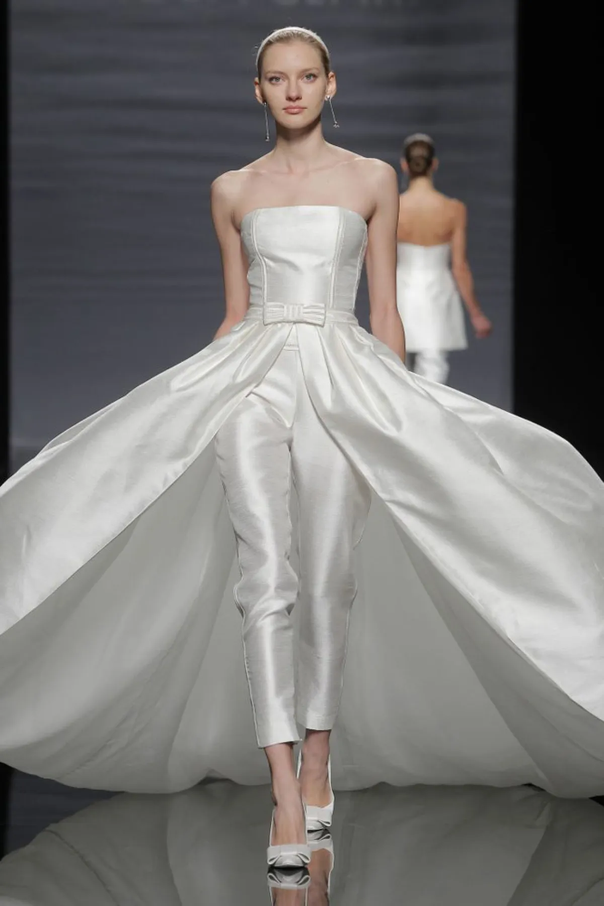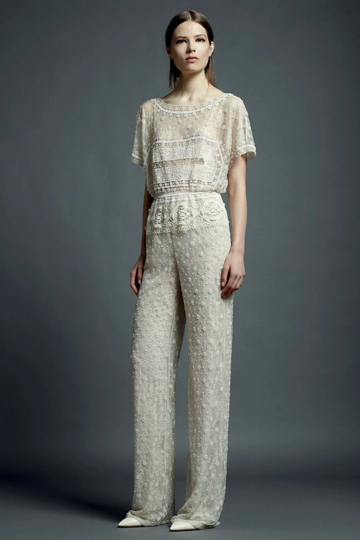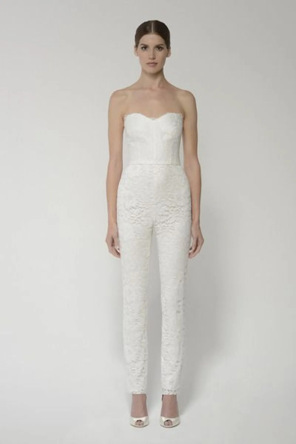 يُعتبر الـ Jumpsuit أحدث صيحات الموضة لهذا الصيف. فهو مناسب للعروس التي تهوى التميّز في نهار زفافها.
