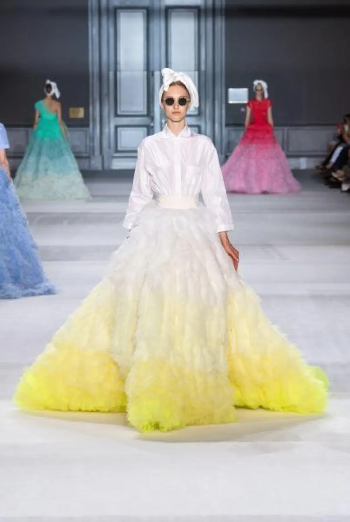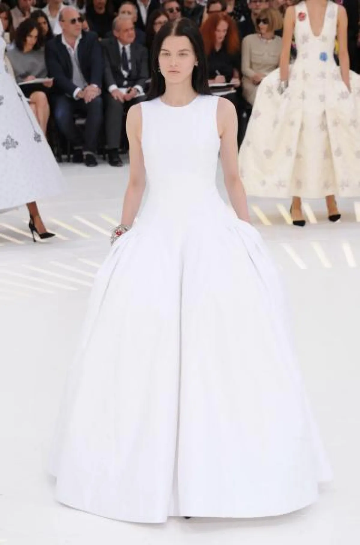 لكنّ الأبرز أنّ العروس كان لها حصّة مميّزة ضمن هذه العروض، بفساتين غريبة ، كتلك التي قدّمها دار "أرماني." أما "شانيل"، فقدم فستان بذيل طويل.