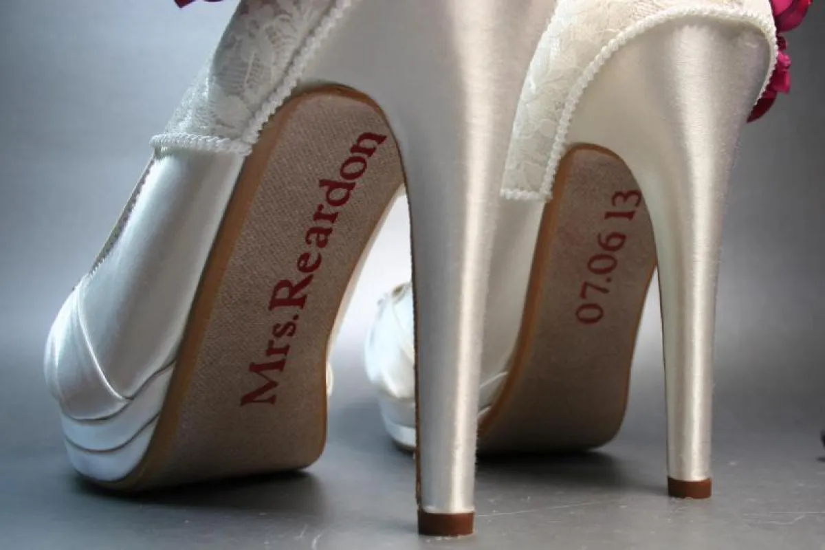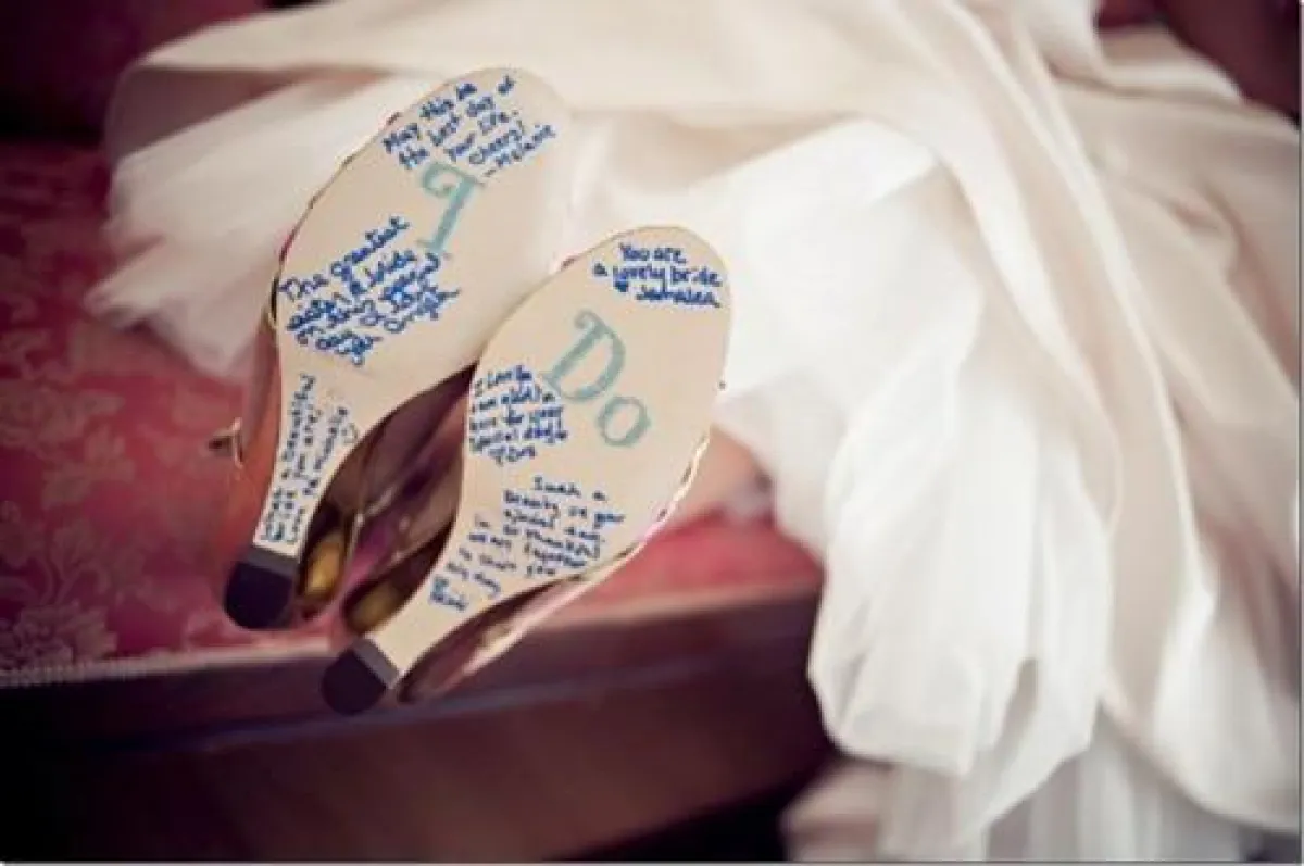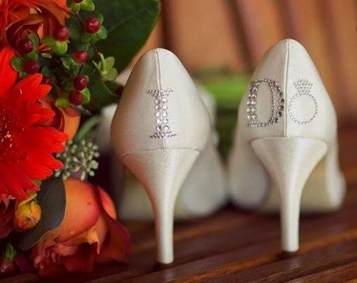 حتى تكتمل طلّتك وتبدين عروساً كالأميرات، عليكِ باختيار حذاء عروس مميّز ومزيّن، إمّا بأحجار اللؤلؤ وإمّا بالأحجار المرصّعة. لكن بعد انتقائك الحذاء، ما رأيك في أن تُضيفي عبارات جميلة إلى كعبه، بواسطة أحجار الستراس، أو أن تكتبي تاريخ موعد زفافك. لا بدّ من أن تراجعي هذه الأفكار الجميلة، التي جمعناها لك، من دون أن تنسي التقاط صور بعد انتهاء الزفاف.