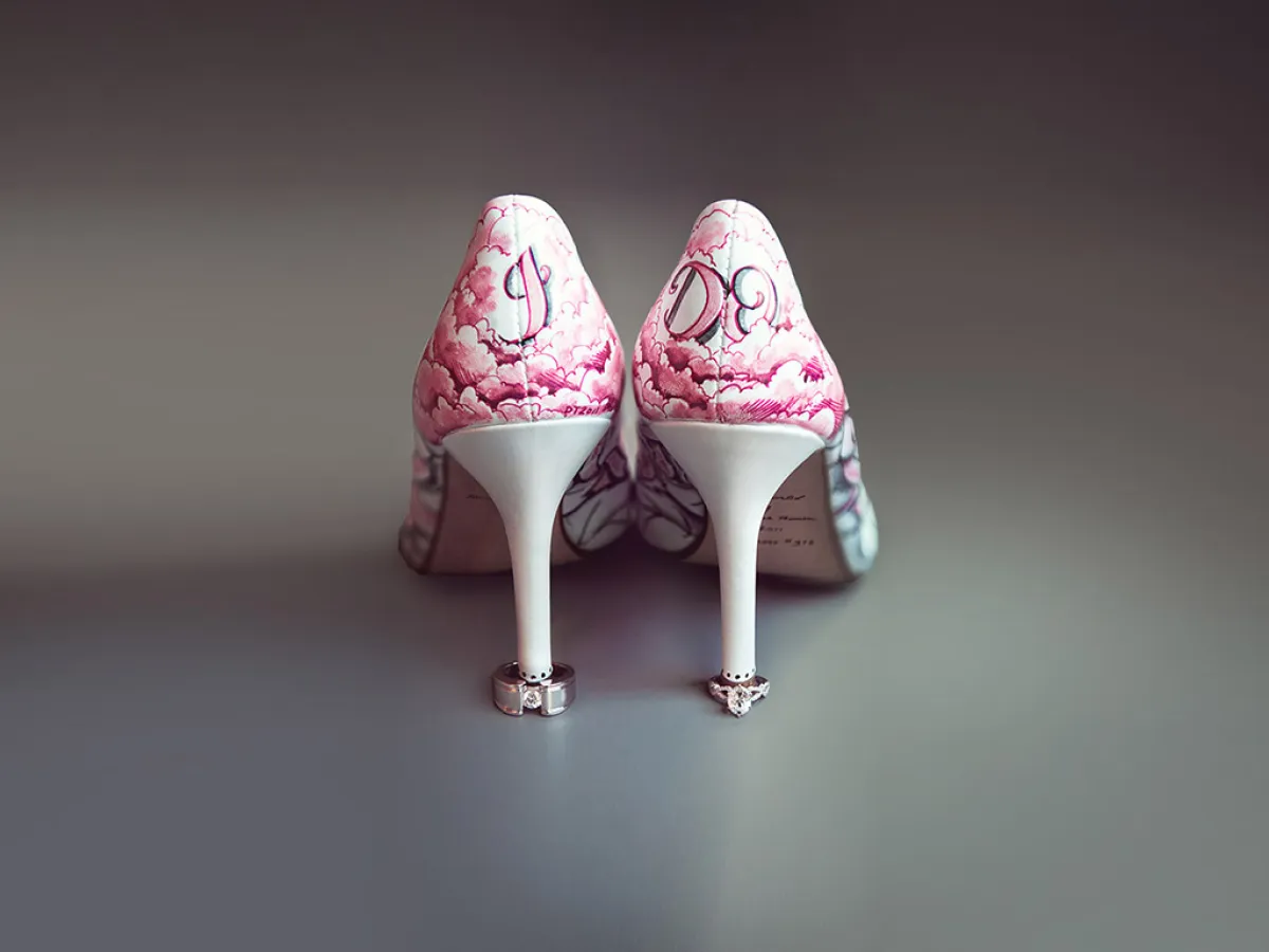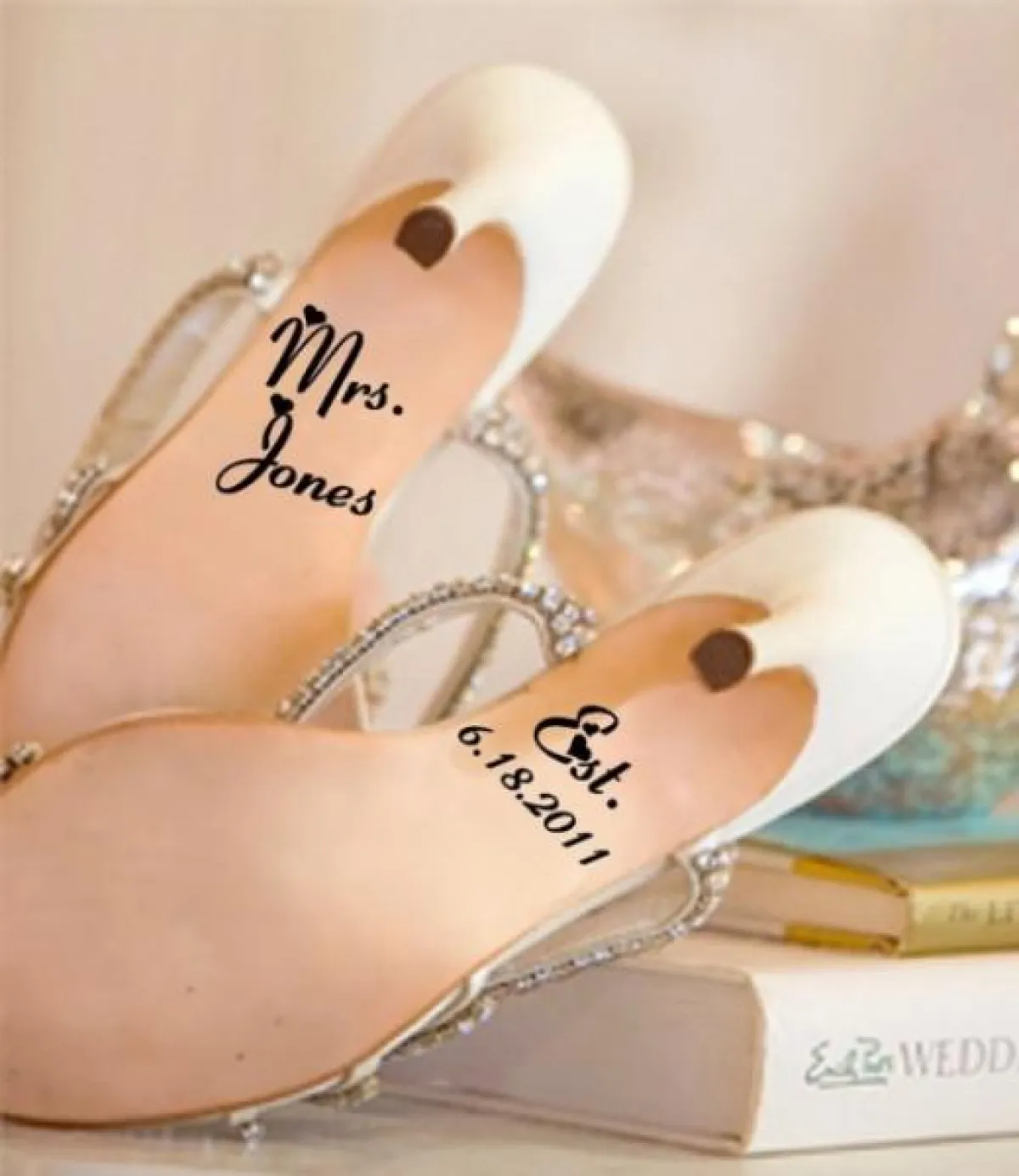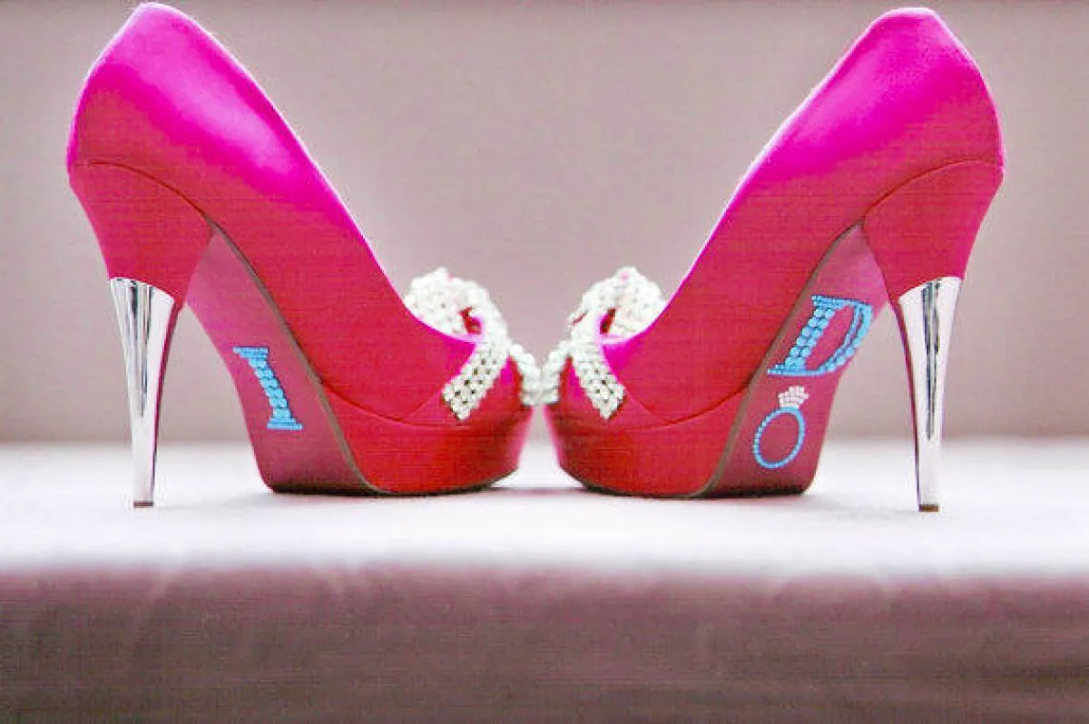 حتى تكتمل طلّتك وتبدين عروساً كالأميرات، عليكِ باختيار حذاء عروس مميّز ومزيّن، إمّا بأحجار اللؤلؤ وإمّا بالأحجار المرصّعة. لكن بعد انتقائك الحذاء، ما رأيك في أن تُضيفي عبارات جميلة إلى كعبه، بواسطة أحجار الستراس، أو أن تكتبي تاريخ موعد زفافك. لا بدّ من أن تراجعي هذه الأفكار الجميلة، التي جمعناها لك، من دون أن تنسي التقاط صور بعد انتهاء الزفاف.