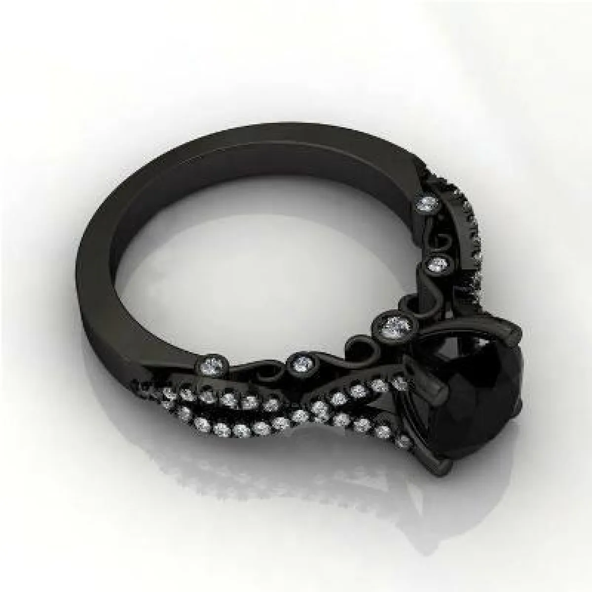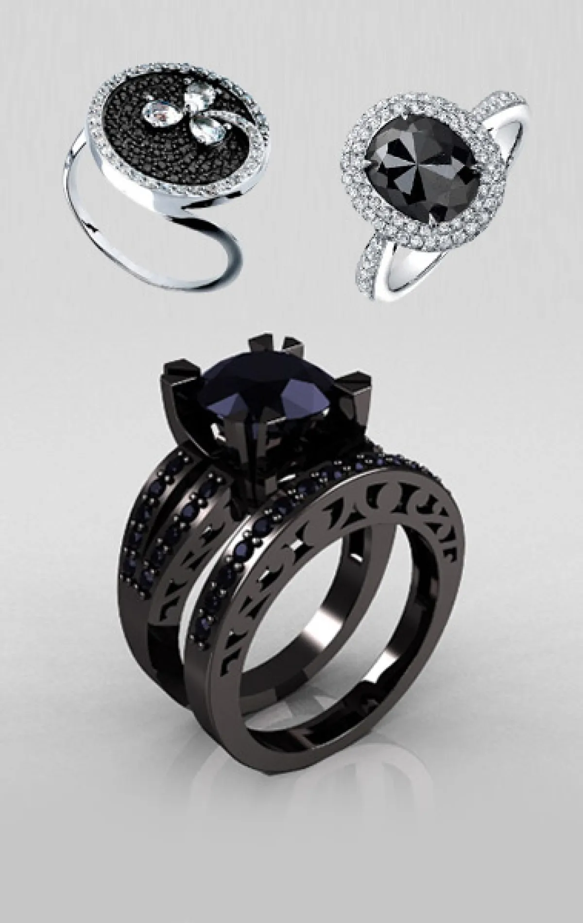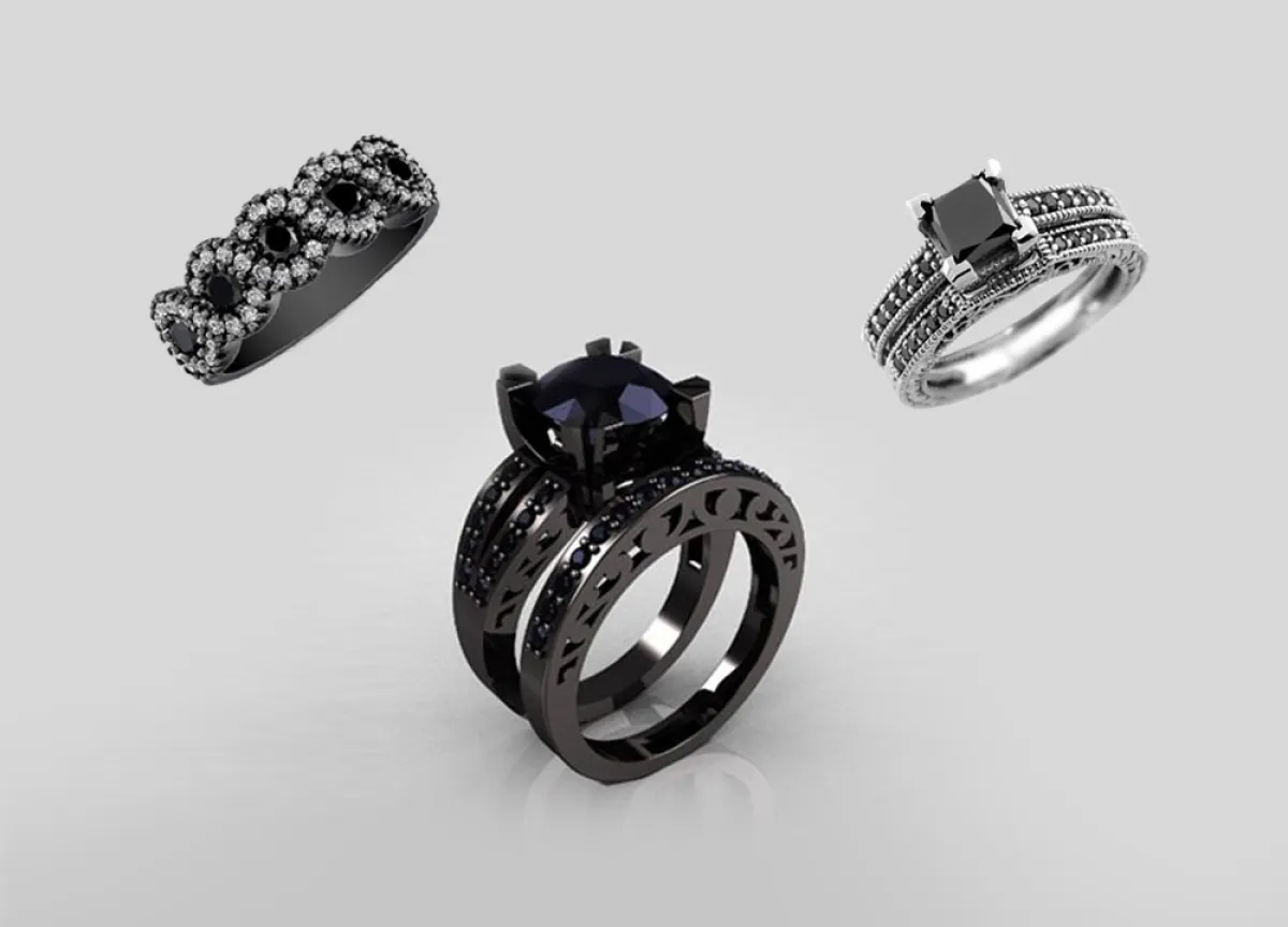 عادة، يكون خاتم الزفاف من الألماس الأبيض الذي يشعّ بحبيباته الجميلة، لكنّ كثيراً من السيدات يخترن اكسسوارات زفافهن بشكل غير مألوف وغريب بعض الشيء، كالخاتم المرصّع بالألماس الأسود.