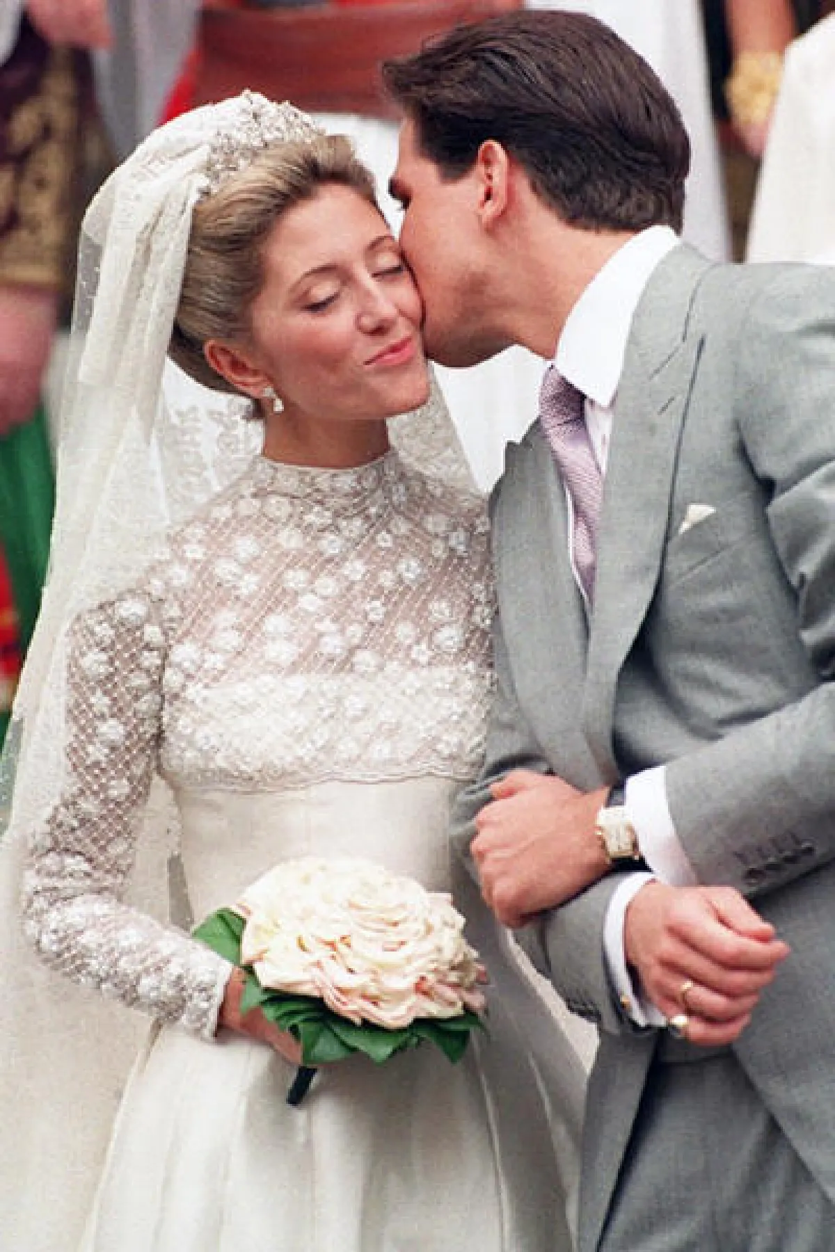 التاج لمسة لا غنى عنها في تسريحة زفافك، فهو يُساعد في تثبيت طرحتك. لكنّ معظم الأميرات يستخدمن الطرحة لإبراز تصميم تاجاتهنّ المرصّعة بالألماس والأحجار الكريمة.