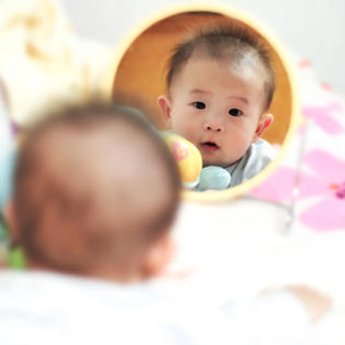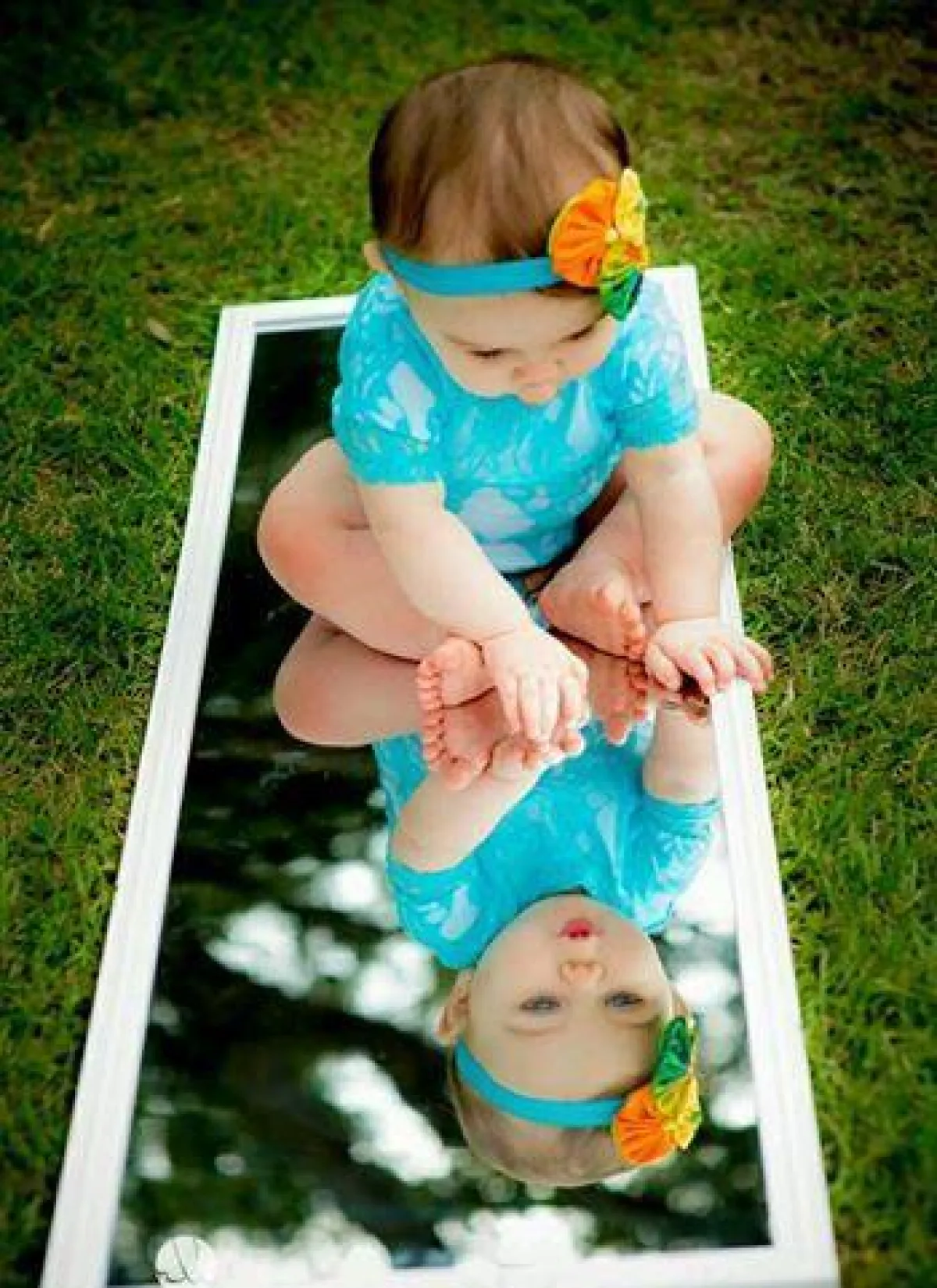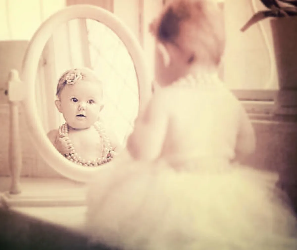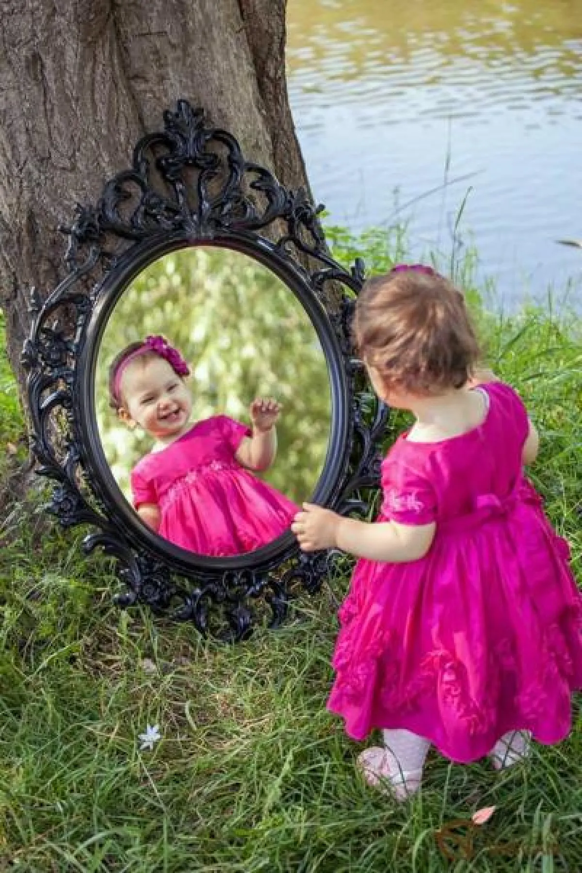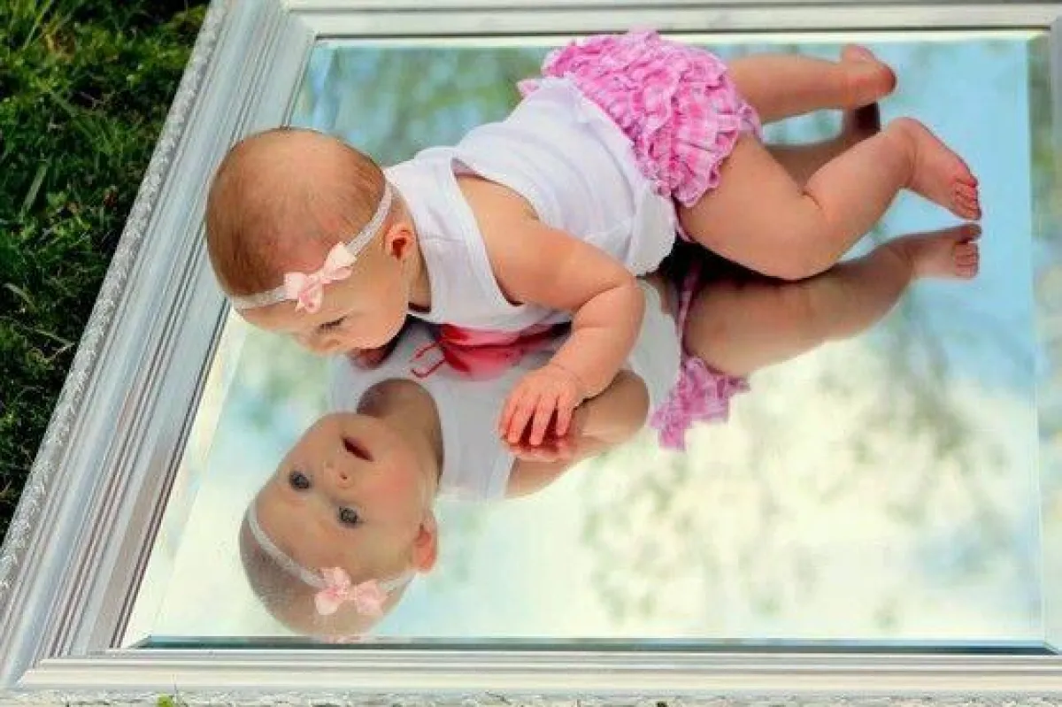 براءة وطرافة تظهر على وجوه هؤلاء الأطفال، و في تعابيرهم، ما يعكس دهشتهم ممّا يرونه من صورهم أمام المرآة.