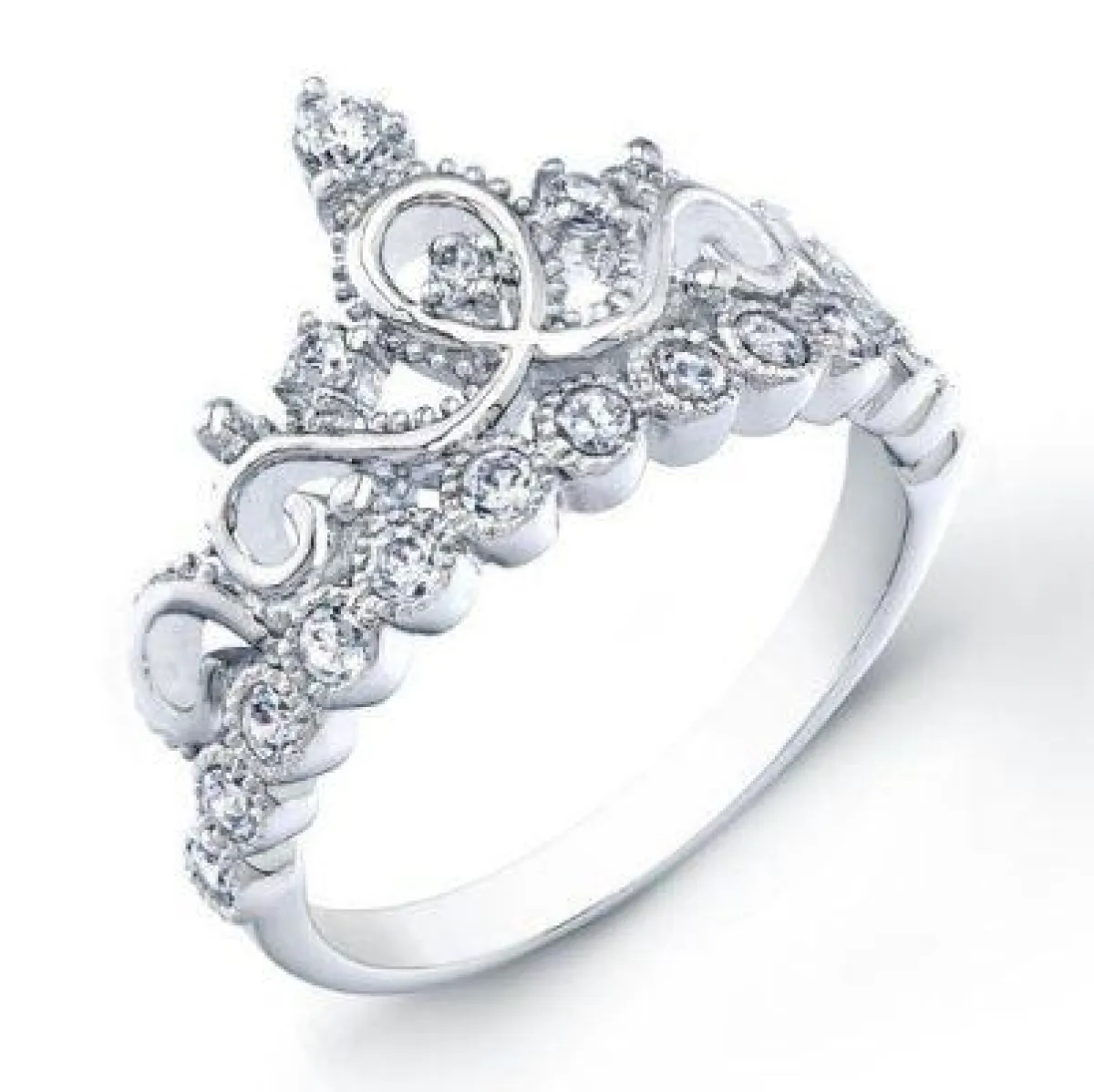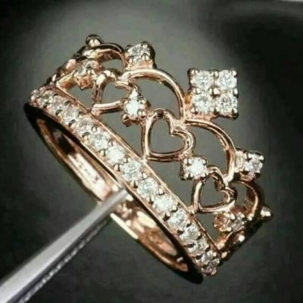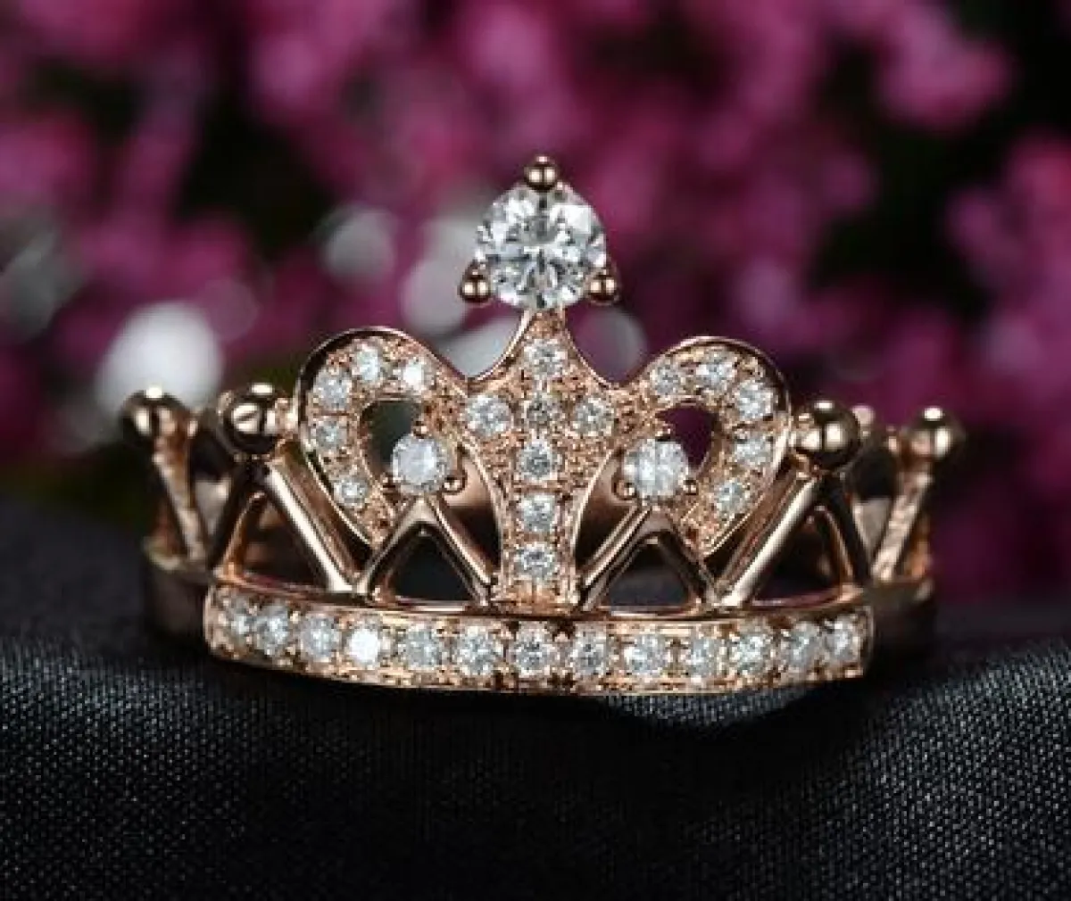 كوني ملكة على عرش الزواج، وتميزي في اليوم المنشود كالملكات من خلال خاتم زفاف على شكل تاجٍ مرصعٍ بالألماس.