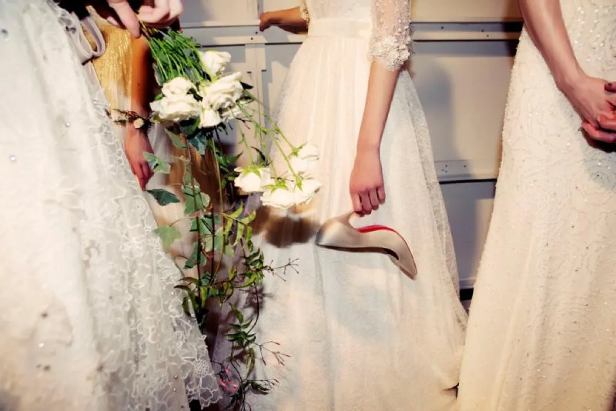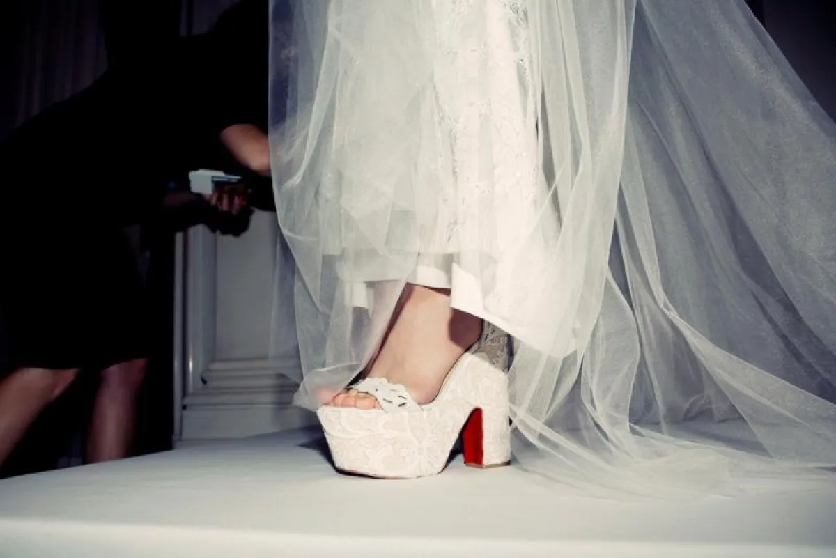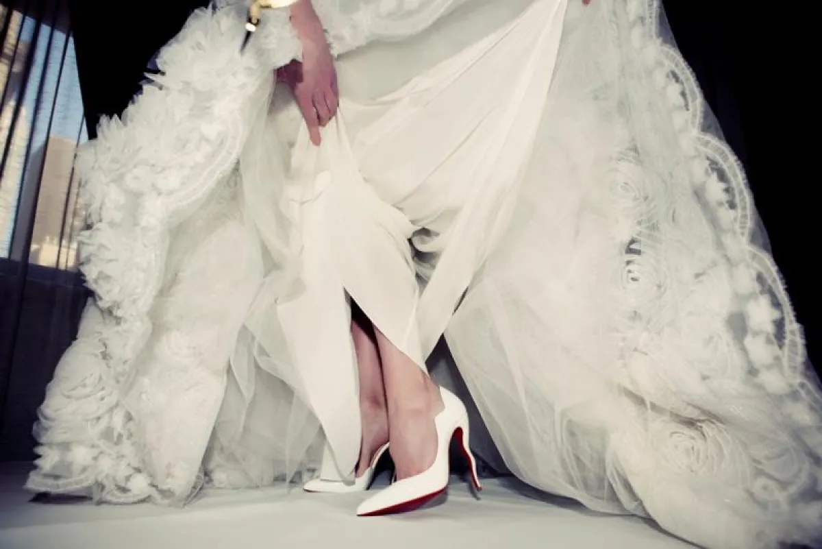 والآن نقول شئ باللون الأحمر! فى الربيع سوف ترين الكعب الأحمر لكريستيان لوبوتان فى عروض فساتين الزفاف لثلاثة من مصممي الأزياء المشهورين وهم:نعيم خان و جيني باكهام و ماركيزا.