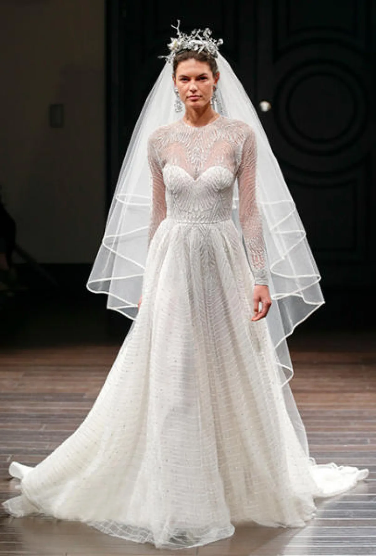 اليوم إخترنا ألبوم كامل لصور فساتين زفاف محتشمة بأكمام طويلة أو شفافة، انتقي الفستان الأفضل لمناسبتك خلال هذا الشهر الفضيل.