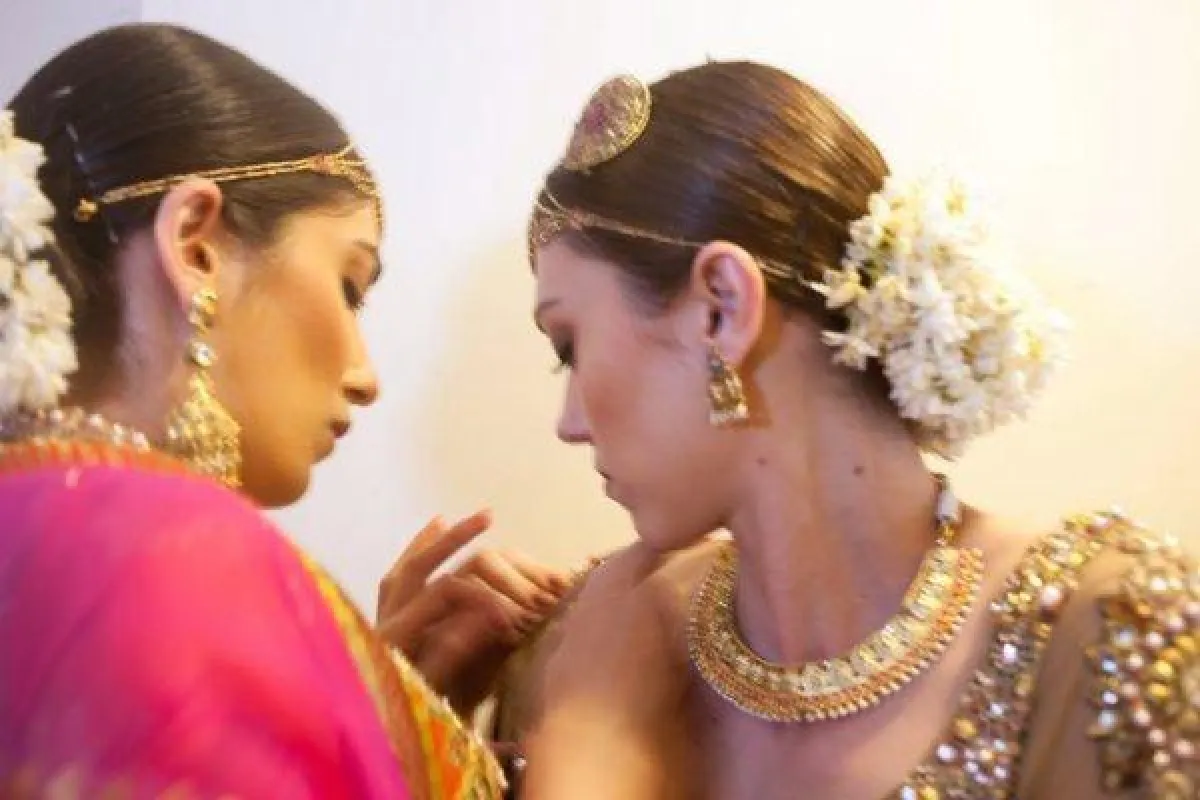 الأحمر يدلّ على "الحياة الجديدة". وهو لون اتّبعه مصمّمو الأزياء الهندية مستخدمين التطريز والستراس من الرأس حتى أخمص القدمين، كما اعتمدوا الألماس المتقّطر من فستان الزفاف والحرير الناعم والساتان الباهظ الثمن.