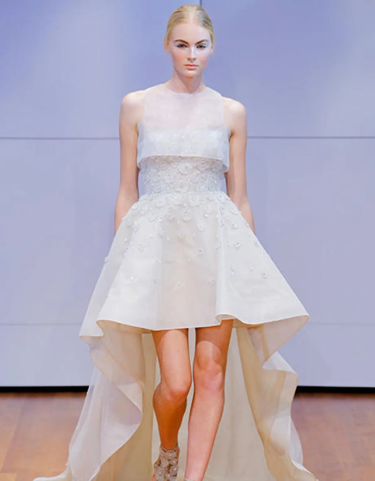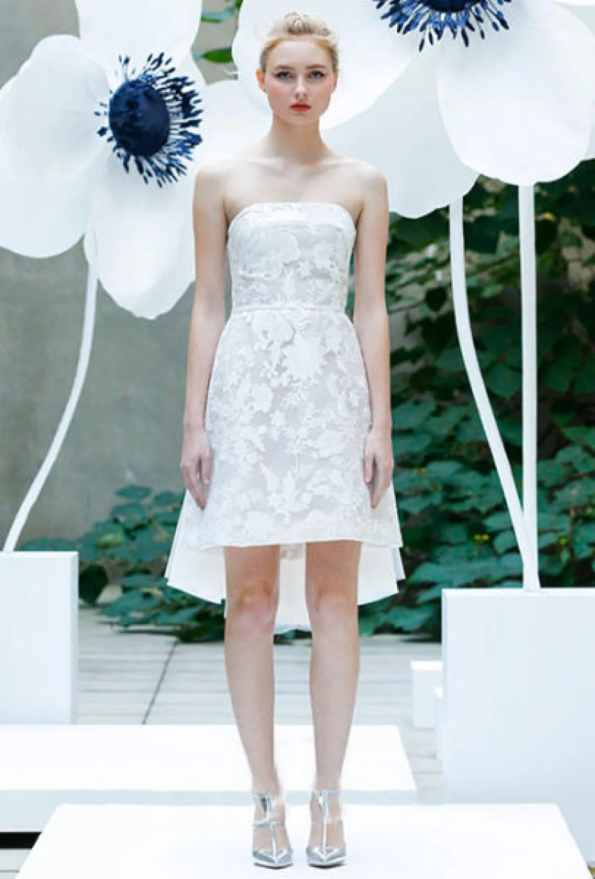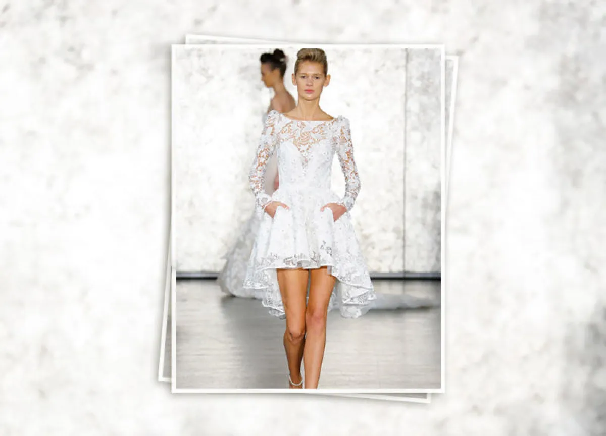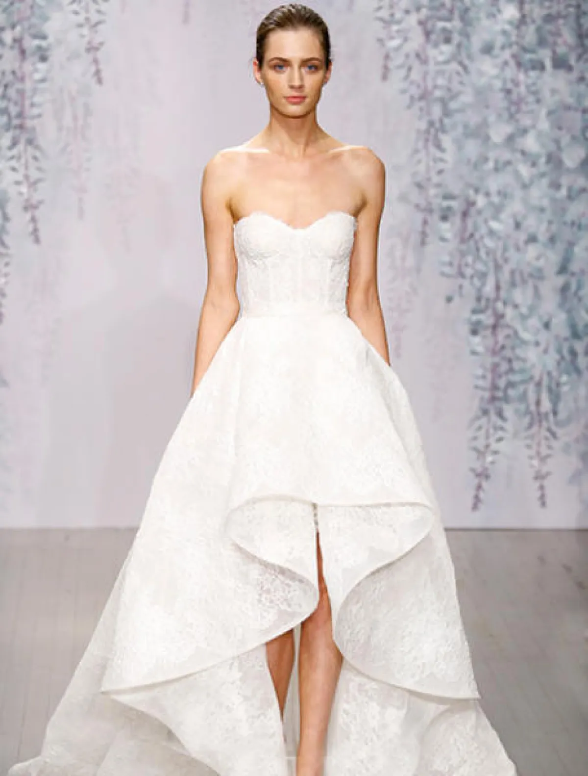 من صيحات هذا الموسم لعروس 2016 اخترنا لك قصة فساتين الزفاف القصيرة من الأمام والطويلة من الوراء.