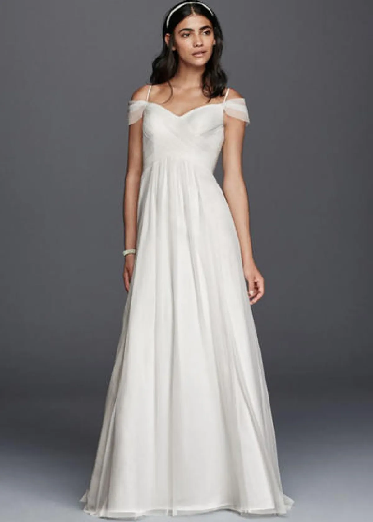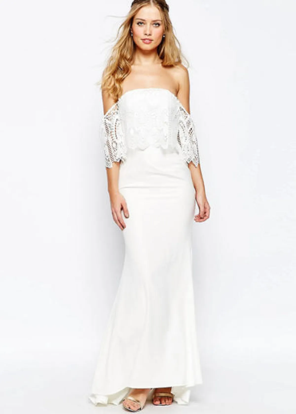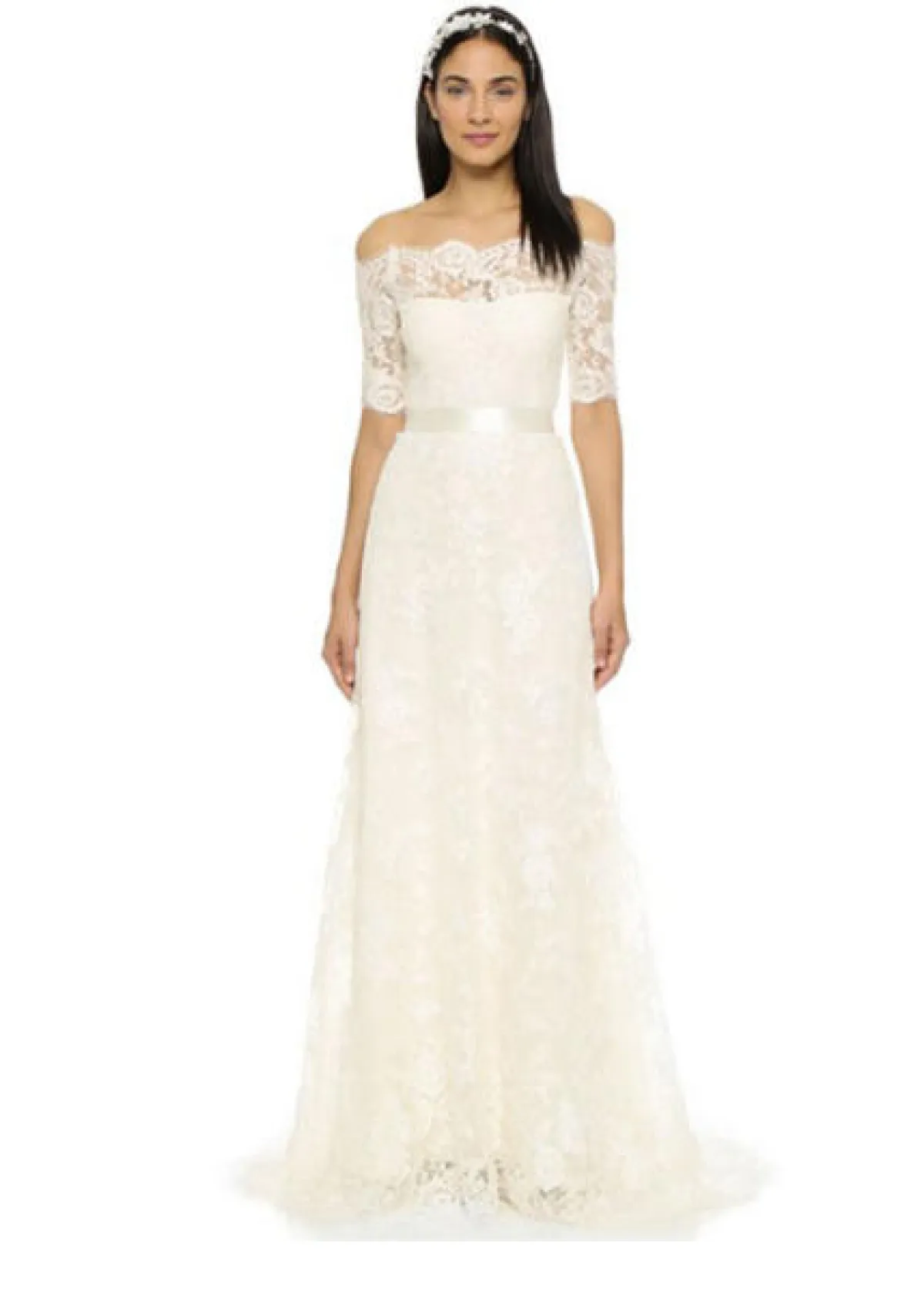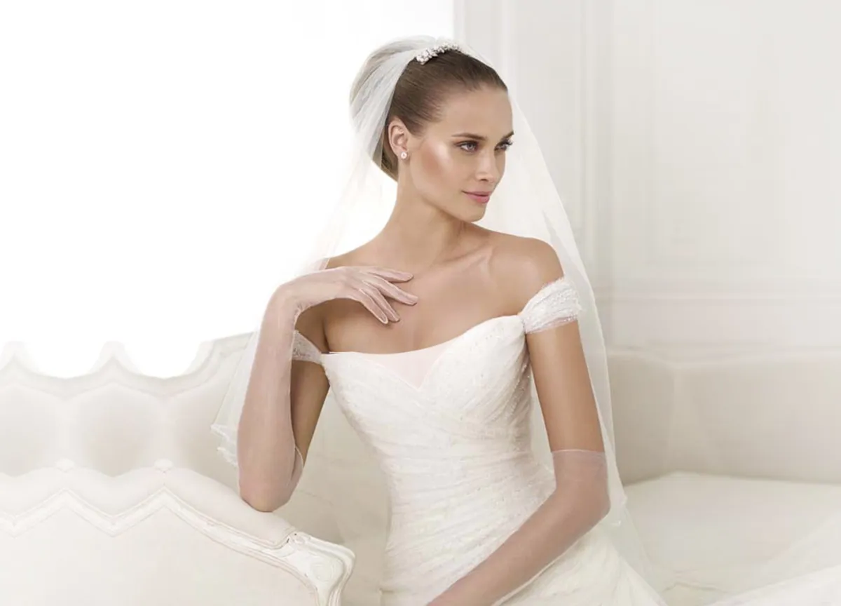 إن راجعنا صيحات فساتين زفاف 2016 سنجد أن الفساتين ذات الأكتاف المنسدلة رائجة جداً.