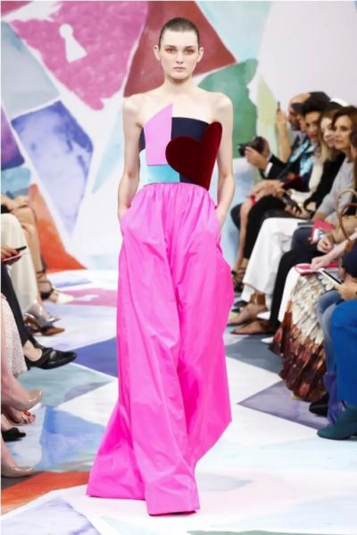 فستان طويل باللون الفوشيا من تصميم سكياباريللي.