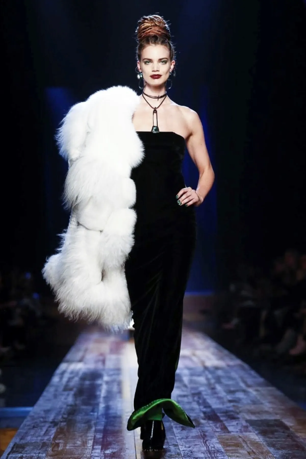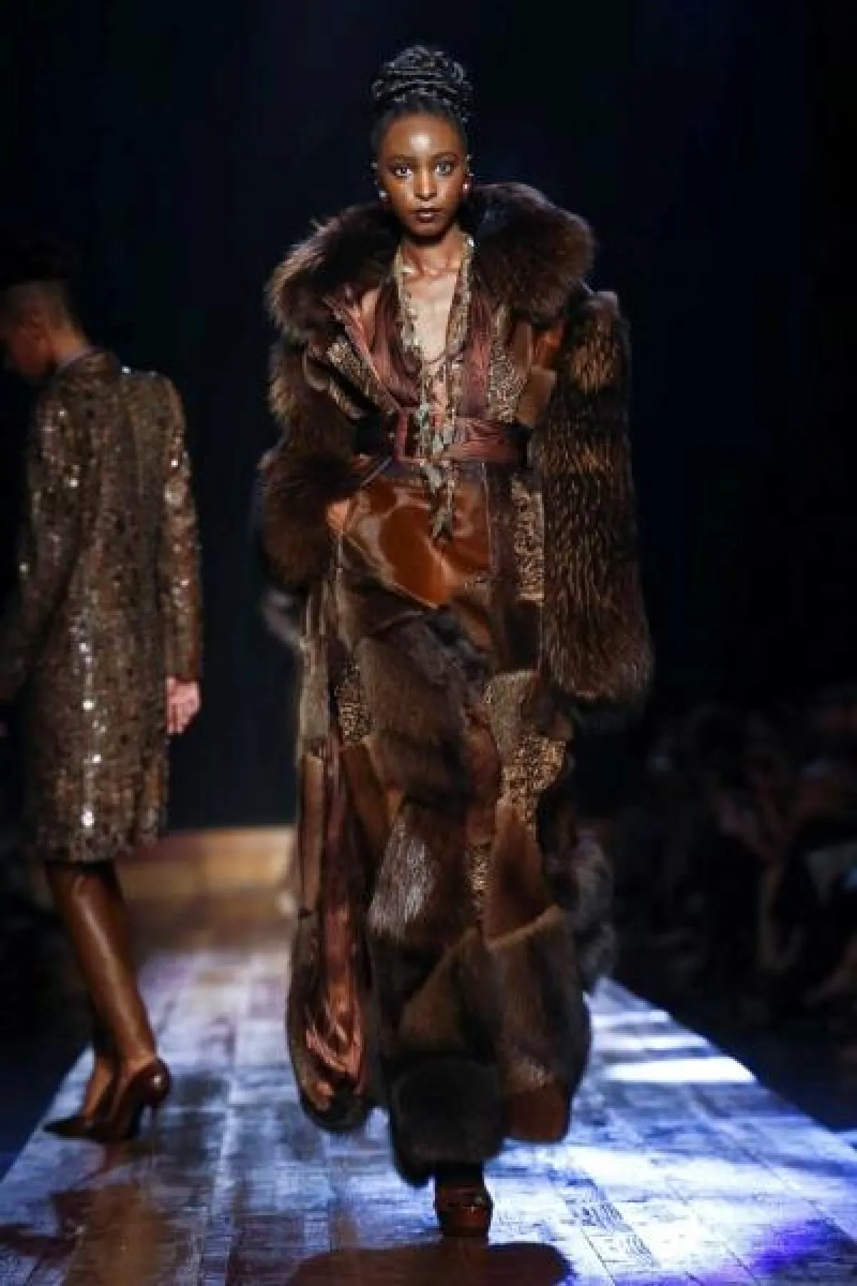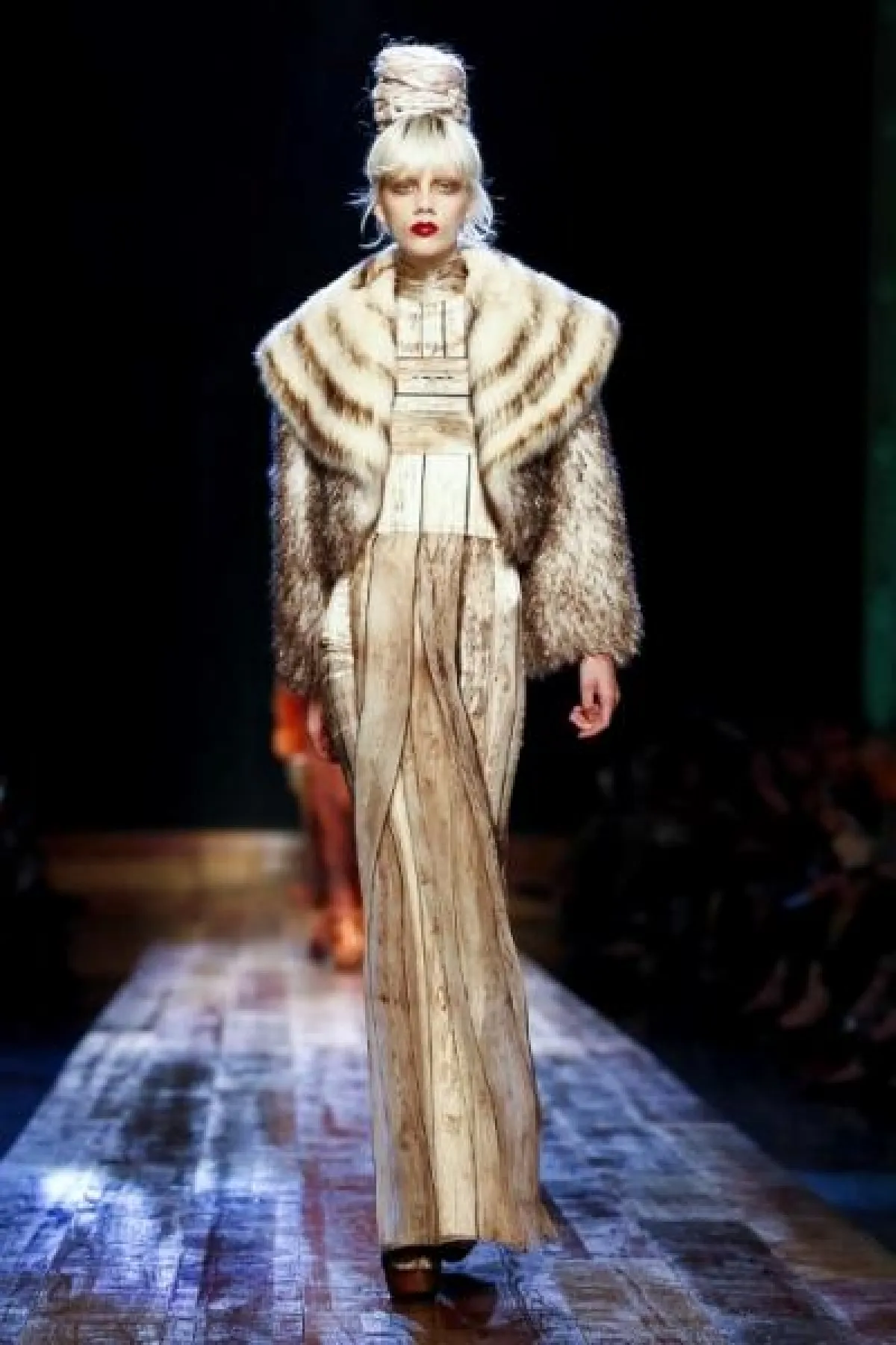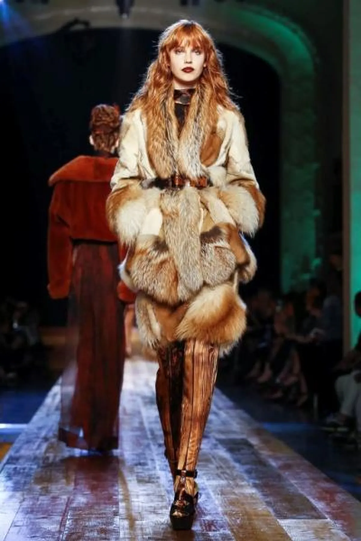 تميز عرض المصمم الفرنسي جان بول غوتييه Jean Paul Gaultier في أسبوع باريس للموضة بسيطرة الفرو على أغلب الاطلالات التي ظهرت بالألوان النارية الدافئة.