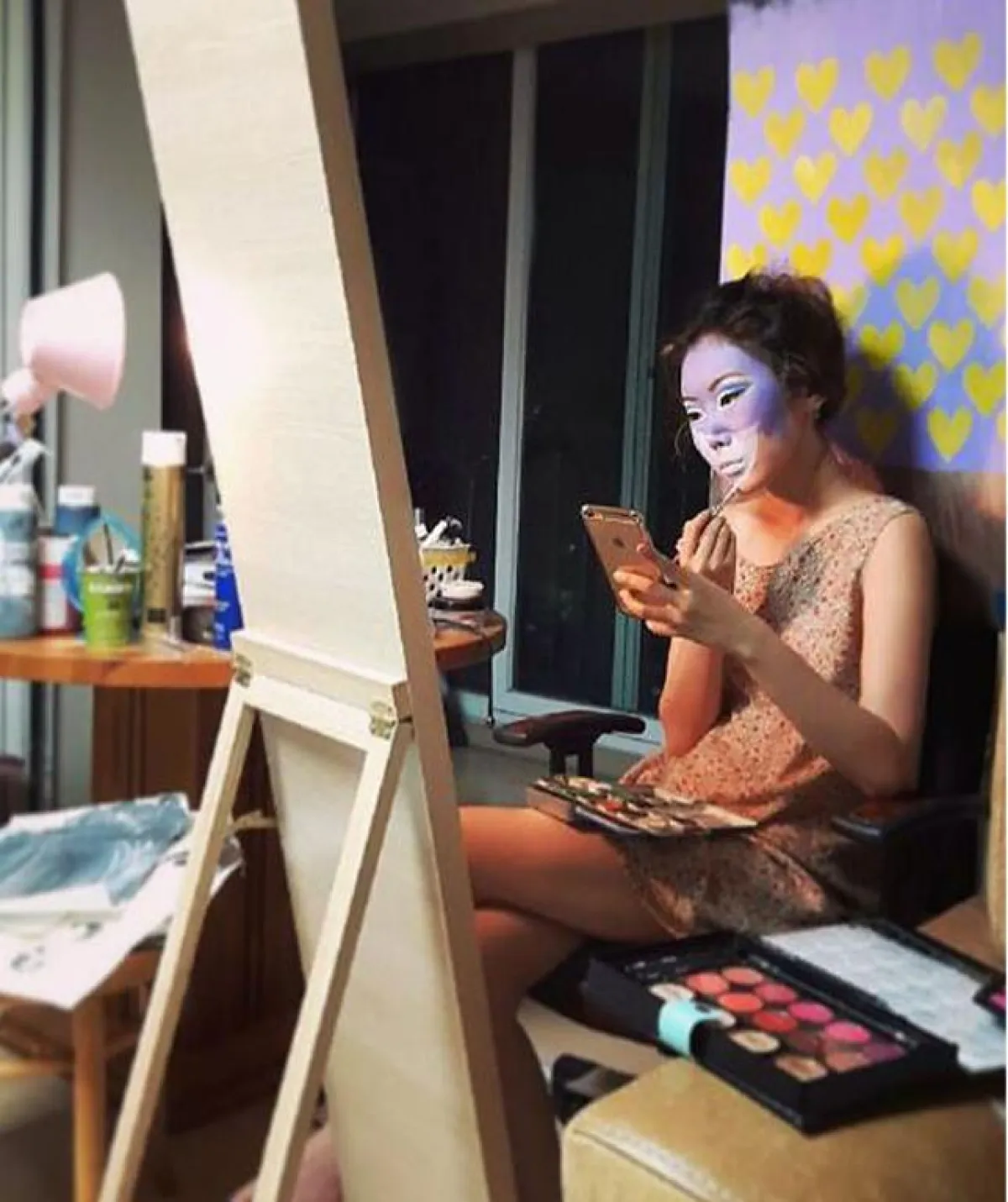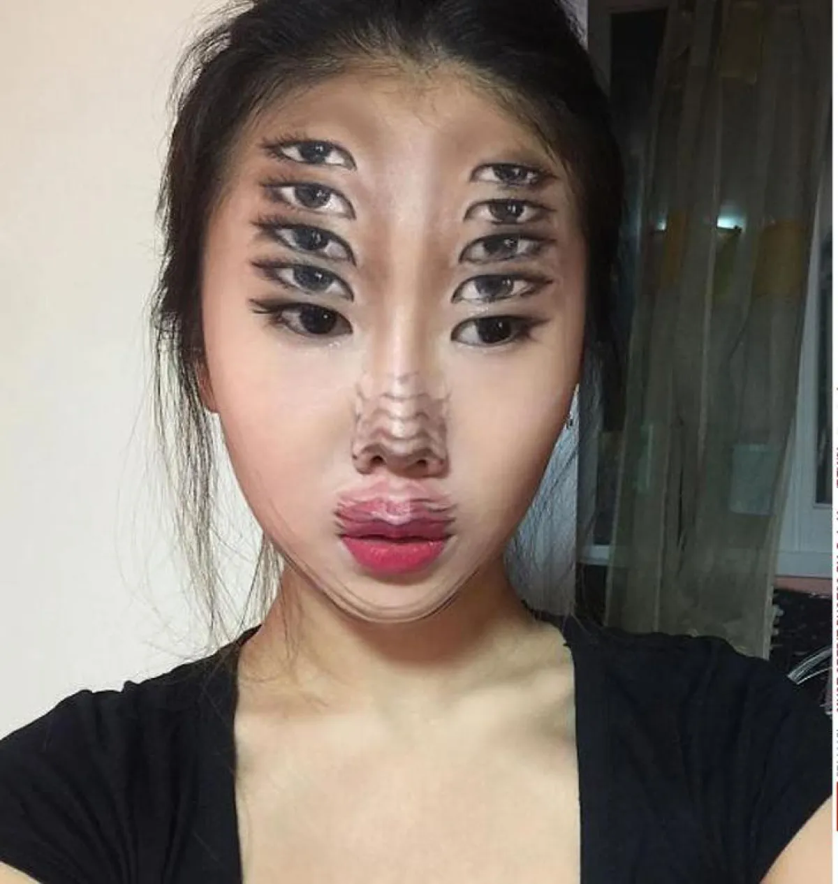 تقوم الطالبة Dain Yoon داين يون (22 عاماً) من كوريا الجنوبية باستخدام الماكياج، ولكن ليس بهدف التجميل، بل لرسم لوحات غاية في الغرابة على الوجه باستخدام الخداع البصري، ويون هي فنانة شابة تدرس حالياً في جامعة كوريا الوطنية، وهي ابنة أستاذ ورسام، استوحت فنها من أعمال والدها، ولكنها طورت رسوماتها وأعطت بعداً أعمق لأعمالها.