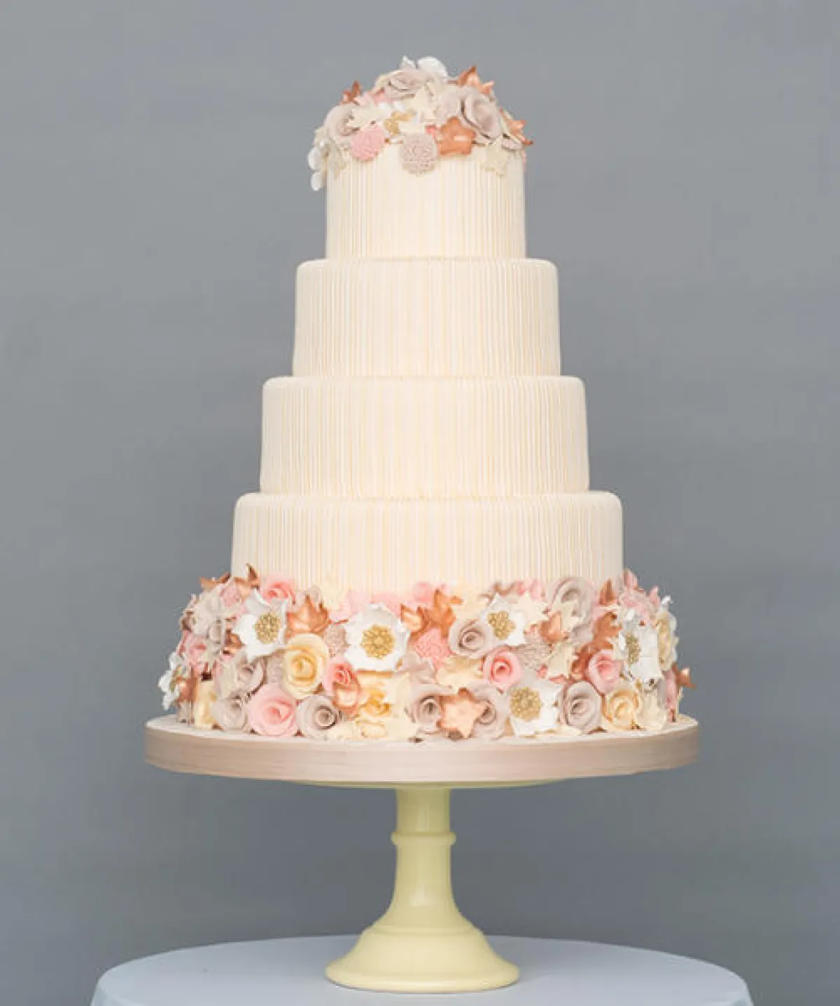 من اتجاهات موضة أعراس ربيع وصيف 2016، التي اخترناها لك ضمن أسبوع العروس في سيدتي، كيكات أفراح بعدّة طبقات، مزيّنة بأنواع مختلفة من الأزهار والورود الملونة، من أجل إضفاء جوٍّ من البهجة والحب والرومانسية، فيكون زفافك مميّزاً وأنيقاً.