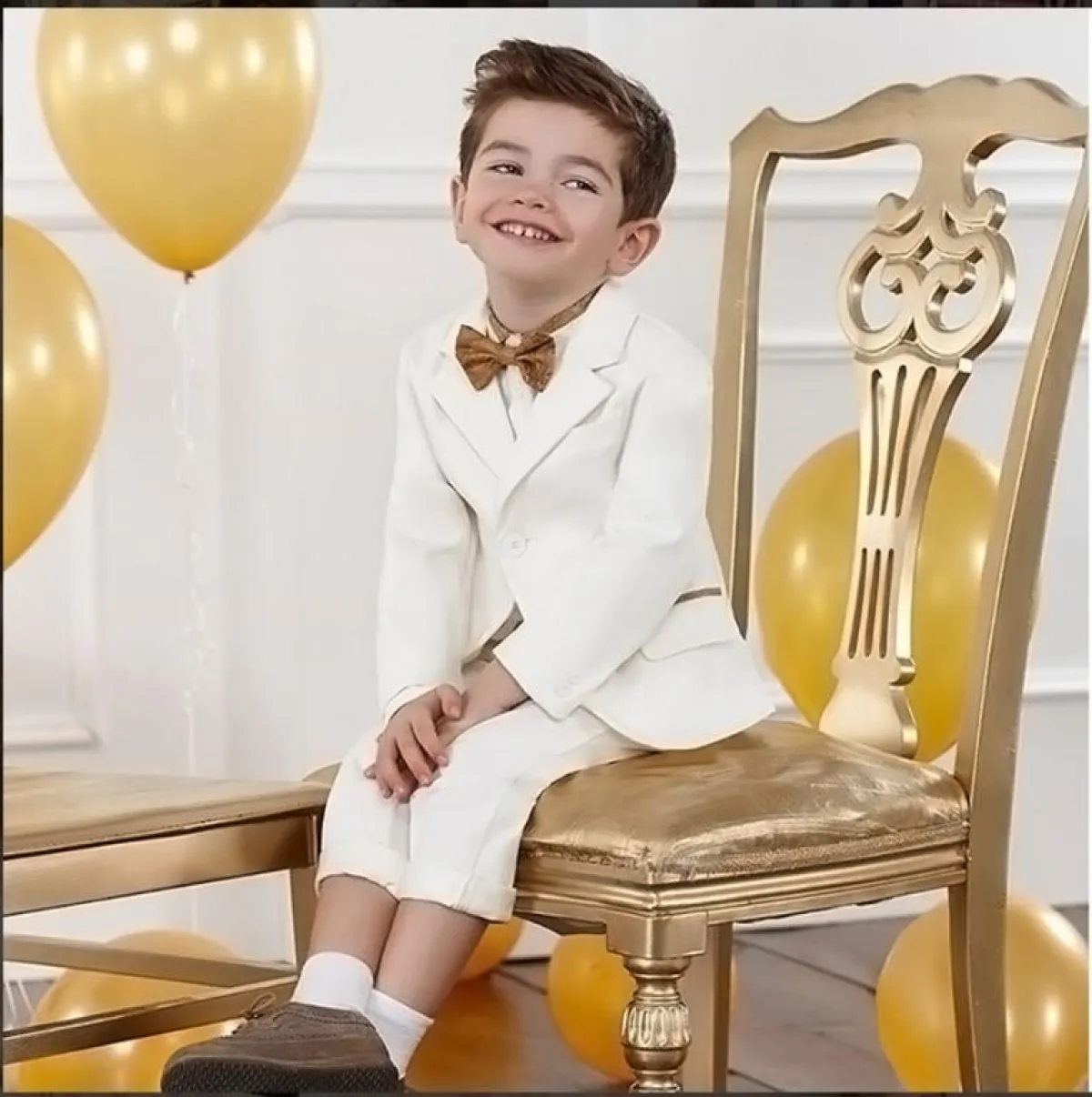 بدلة رسمية باللون الأبيض مع بابيون ذهبي