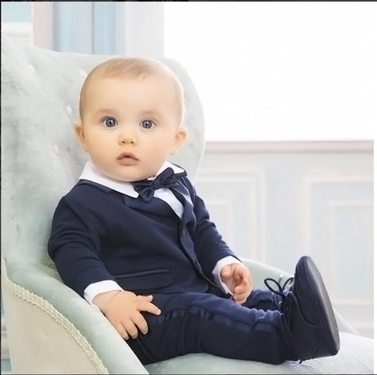 بنطلون وجاكيت قطنيان على هيئة البدلة الرسمية باللون الكحلي