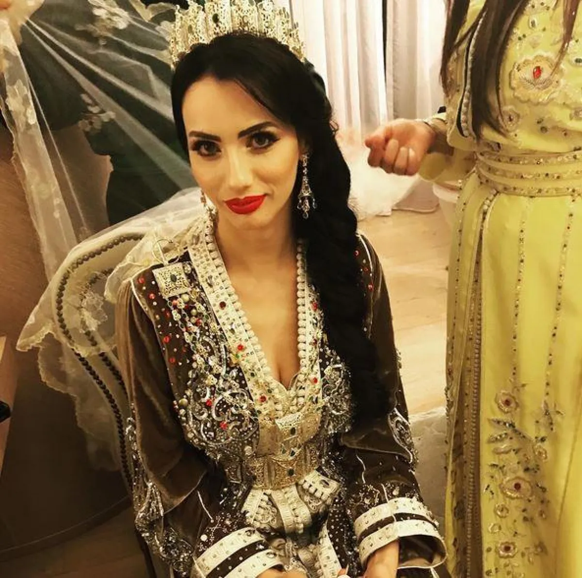 هكذا تكون العروس قد أطلّت في يوم زفافها بقفطان وفستان زفاف.