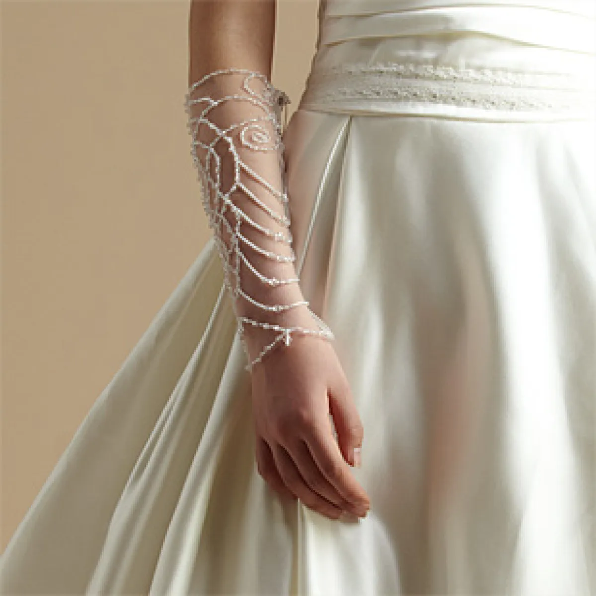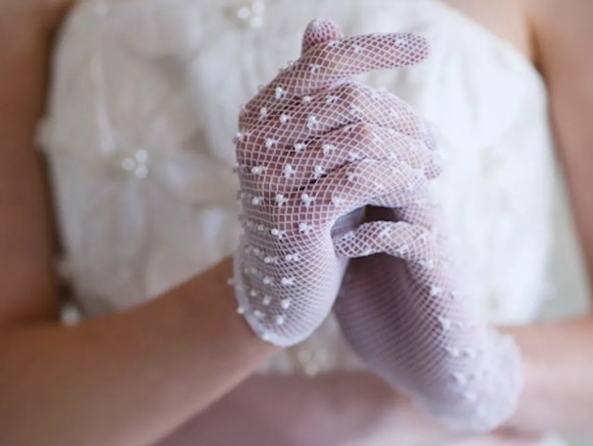 ترغب الكثير من العرائس في ارتداء القفازات العرائسيّة مع الفستان. لذا استغني عن الاكسسوارات التقليديّة التي تضعها العروس في يديها نهار زفافها، واستعيضي عنها بالقفازات البيضاء.