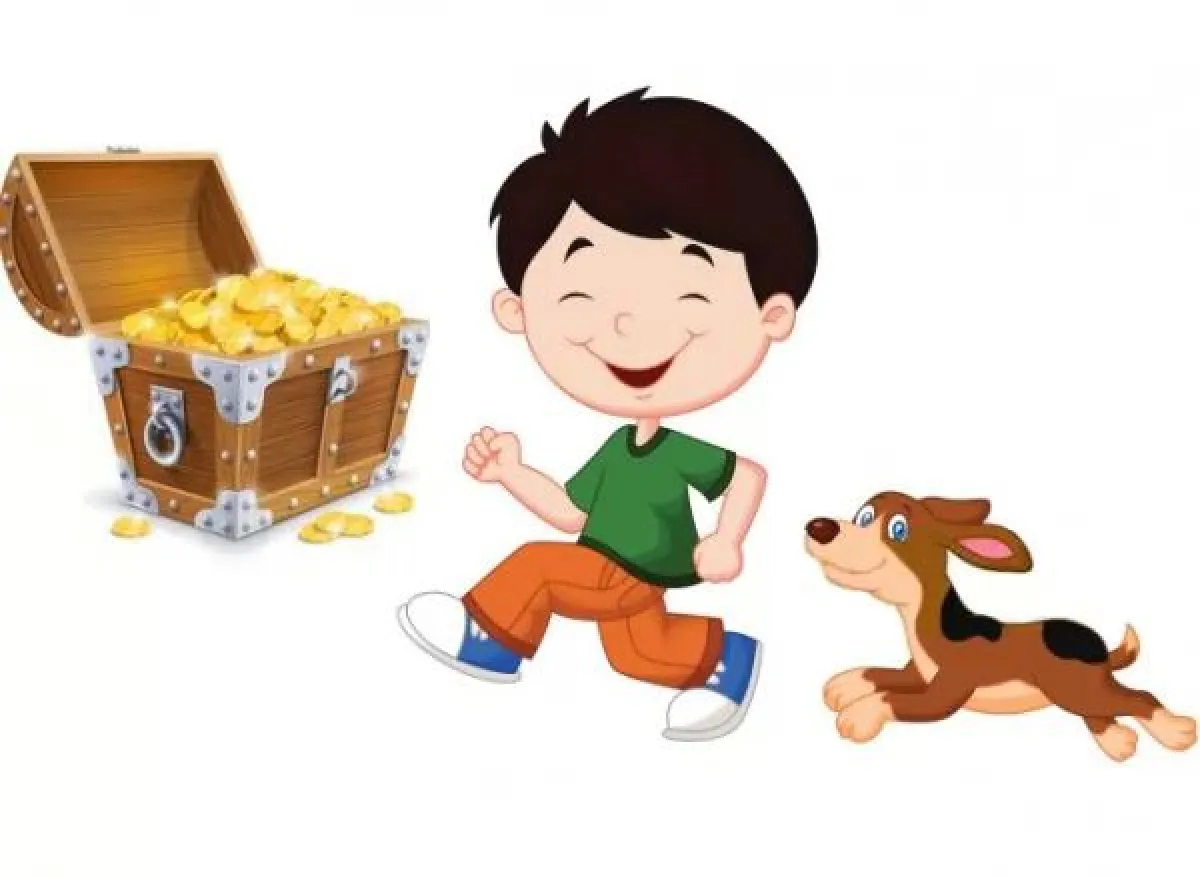 شعر الفتى بالسعادة، وقرر أن يعثر على الكنز، وفي اليوم التالي تعلل بالمرض وذهب مع الكلب ليعثرا على الكنز.