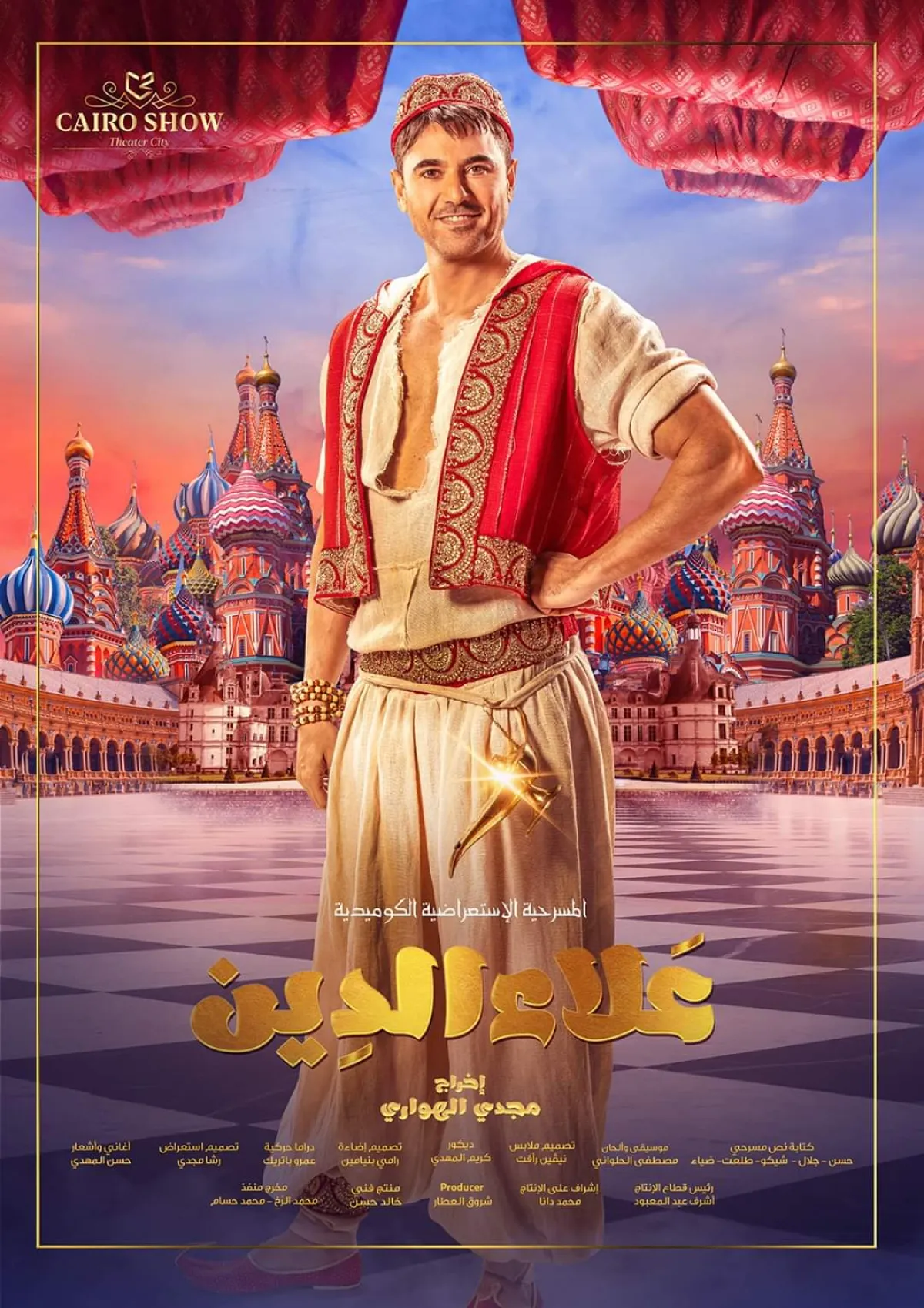 مسرحية علاء الدين من إنتاج واخراج مجدي الهواري و بطولة النجم احمد عز ويشاركه البطولة ، تارا عماد(ياسمين) و محمد ثروت(الجني)، و هشام اسماعيل(الوزير جعفر) و سامي مغاوري (السلطان) ، اسلام ابراهيم (قفة)، محمد جمعة(فرعون).