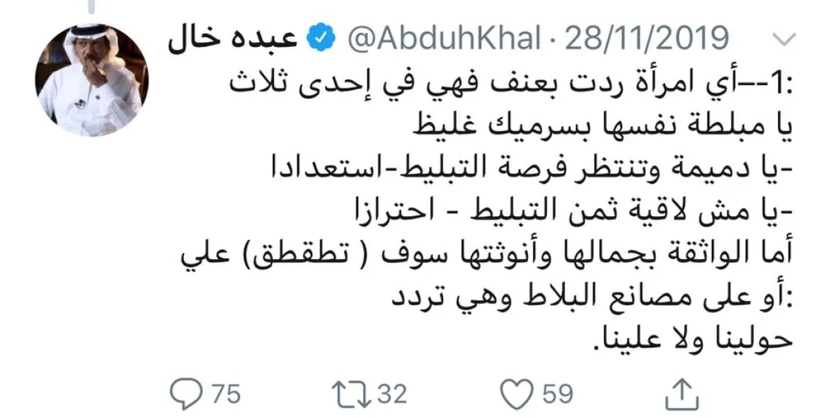 وأضاف: «الردود العنيفة –تحديداً من السيدات- تؤكد أني وضعت الملح على الجرح، «أهو قليل من الملح فعل الفعايل»، كيف لو أمضيت في مشروعي القادم عن بشاعة القادمات من السيدات الجدد؟! البشاعة أن تتخلى عن ذاتك».