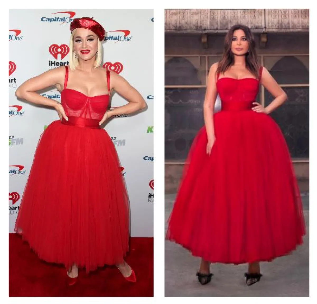 كثيرات من النساء يعشقن تصميمات دولتشي أند غابانا Dolce&Gabbana حيث إنها توحي بالأنوثة والفخامة، وهذا العام شاهدنا كلًّا من إليسا وكايتي بيري Katy Perry وقد اختارتا الفستان الأحمر نفسه المصنوع من التول بقصة الكورسيه من الأعلى، مع التنورة الكلوش من الدار، إليسا اعتمدته لجلسة تصوير مع حذاء أسود، وكايتي اختارته للسجادة الحمراء ونسقته مع قبعة وحذاء باللون الأحمر أيضًا.