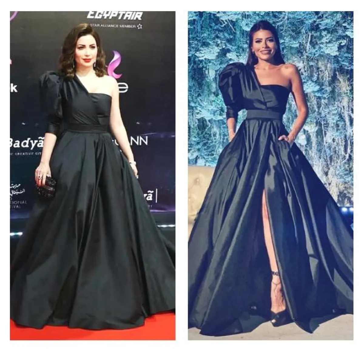 منذ مدة قصيرة تألقت نسرين طافش في مهرجان القاهرة السينمائي، في فستان سهرة أسود بقصة الكتف الواحدة من مرمر حليم Marmar Halim ومن ثم وبعد ذلك في فترة قصيرة شاهدنا الفاشينيستا ومقدمة البرامج العنود بدر، وقد اعتمدت اطلالة متماثلة في الفستان نفسه لحفل زفاف الفاشينيستا العراقية رانيا فواز، في دبي، والجدير بالذكر أنّ اطلالة كل منهما اتسمت بالأناقة وقد نسقن الفستان بأسلوب ناعم وراقٍ.