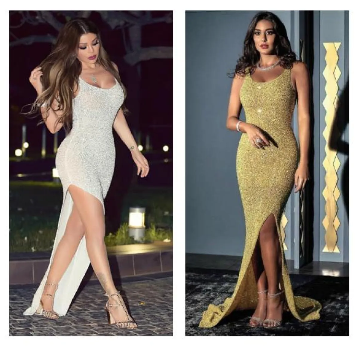 لعلّ هذا الفستان البراق من يوسف الجسمي Yousef Aljasmi كان الأكثر رواجًا بين صفوف النجمات حول العالم وفي الوطن العربي، شاهدنا كلًّا من ياسمين صبري وهيفاء وهبي وقد تألقتا به في مناسبات مختلفة، وكانت قد اختارته ياسمين باللون الذهبي، بينما هيفاء اعتمدته باللون الأبيض، وكلتاهما بدتا غاية في الجاذبية.
